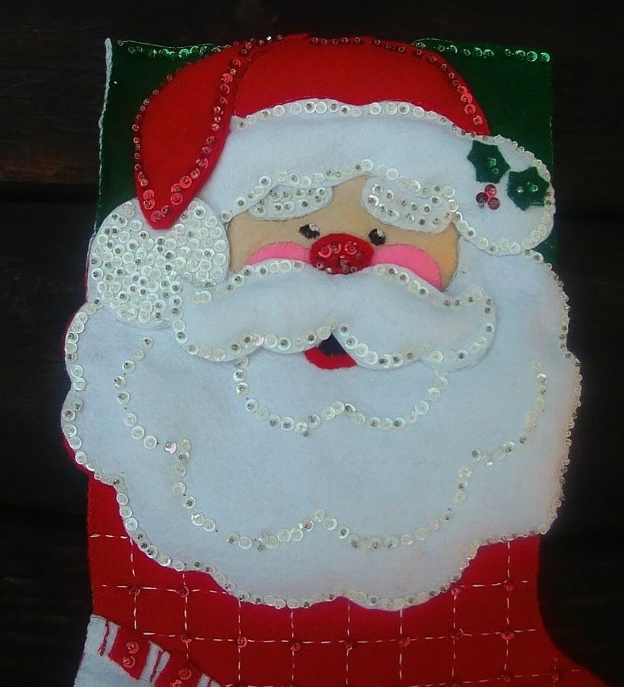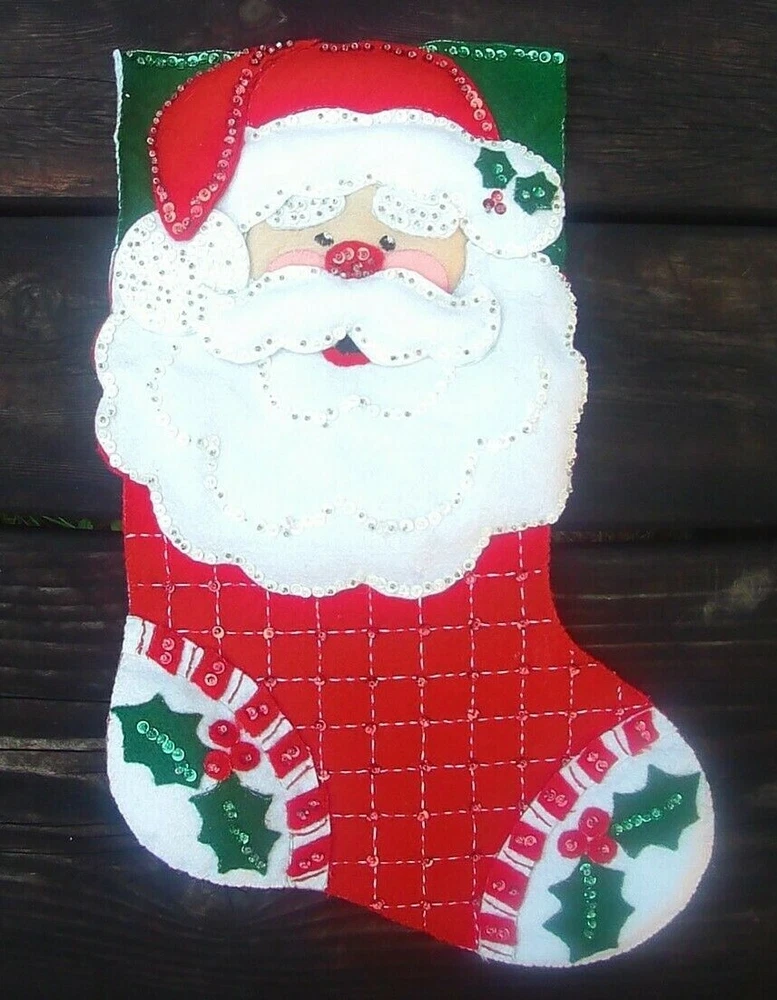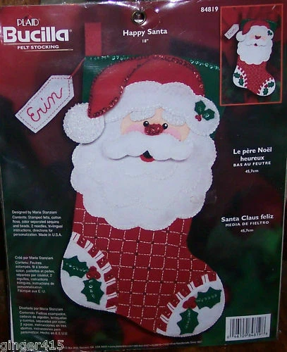 FINISHED Bucilla Happy Santa Felt Christmas Stocking from Kit #84819 Circa 2002 - Completed 2021 Super nice stocking (made from kit #84819) measures 18 inches (diagonally). Last picture is a stock photo of the kit this was made from - this is just a cutie patootie stocking! Will be an awesome addition to anyone's collection! I realized I forgot to stitch in the tag as I was taking the pics, that will be added this evening :-) PLEASE CHECK OUT MY OTHER VINTAGE FELT KITS & FINISHED STOCKINGS CURRENTLY AVAILABLE! I have Bucilla, Dimensions Feltworks, Leewards and others listed! SHIPS WITHIN 24 HOURS OF ORDERING! SMOKE FREE - PET FRIENDLY HOME.