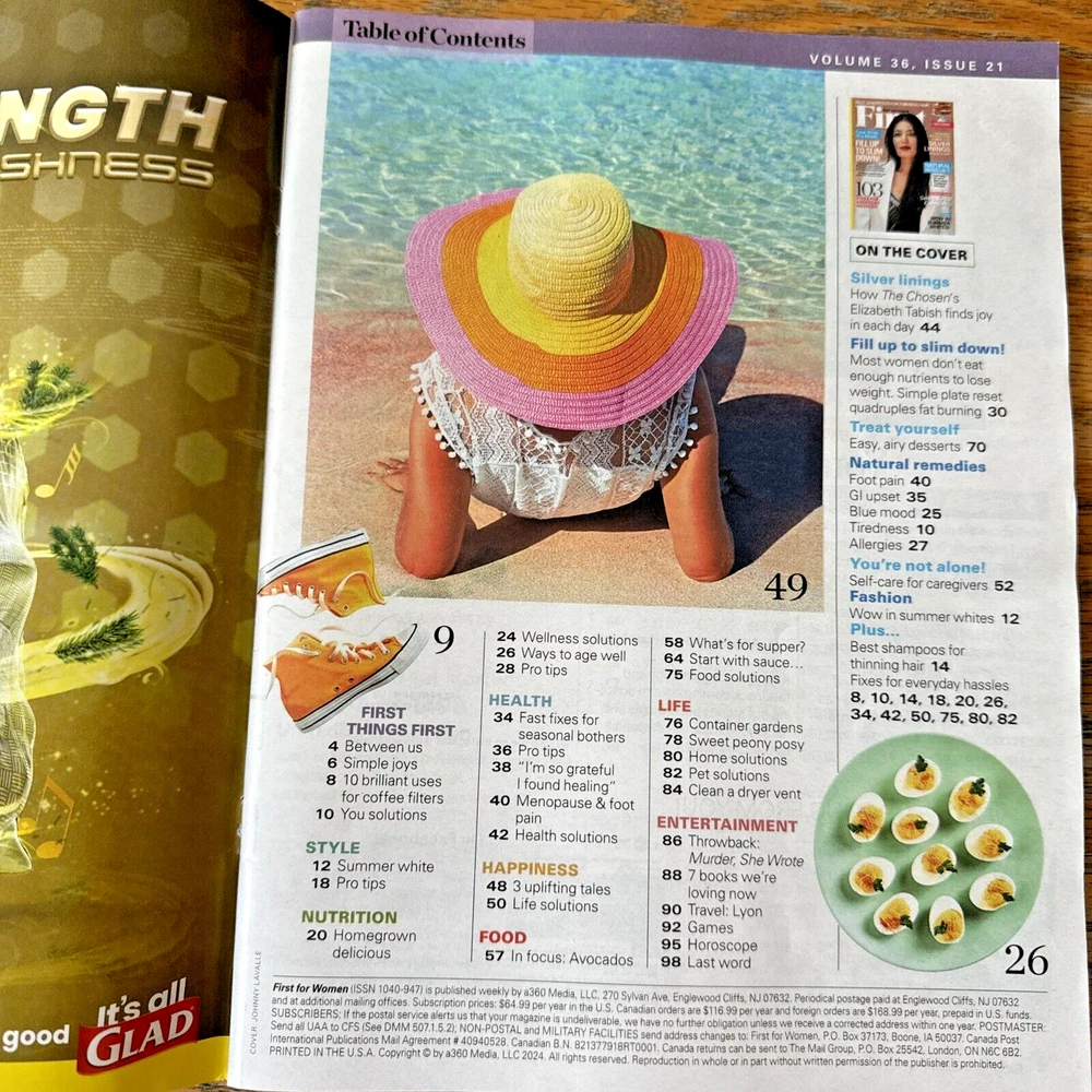 This issue of FIRST for Women Magazine, dated May 20, 2024, features Elizabeth Tabish on the cover and focuses on the topic of medicine for anxiety. The magazine is written in English and includes articles on various aspects of medicine, with contributions from an unknown author. As pictured - I use my own photos. Please look at pictures closely as they are part of the description. Smoke Free Environment US: Fast Shipping with Tracking Provided International: Via eBay International Shipping Program Only Make sure your mailing/shipping address is correct before you submit your order. I won't reship an item for free. This item will be packed with extreme care to insure a safe arrival to its new home. Items may ship with recycled materials. Feedback is very important to us. We strive for 5 stars! Once you receive your item, we ask that you leave feedback for that item. This allows us to know if you are happy with your transaction. In return we will leave feedback for you. Check Out My Other Listings