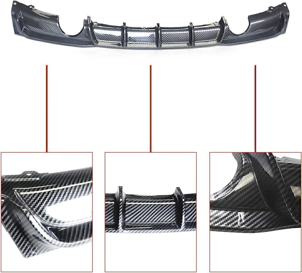 About this item 【Fitment】— Compatible with BMW 3 Series F30 318i 320i 328i 330i 335i 340i M Sport Sedan 2012-2018,Will Not Fit 2 Door Model Or Non-M Sport Bumper 【High Quality】 — Made of top-grade durable ABS plastic material, durable and long lasting 【Carbon Fiber Look】— Three-layer processing technology,The material is not the carbon fiber, but with a carbon fiber style looking 【After-sales service】 - Any issues, feel free to contact us. We will handle it for you within 24 hours Package includes: 1 x Rear Bumper Diffuser