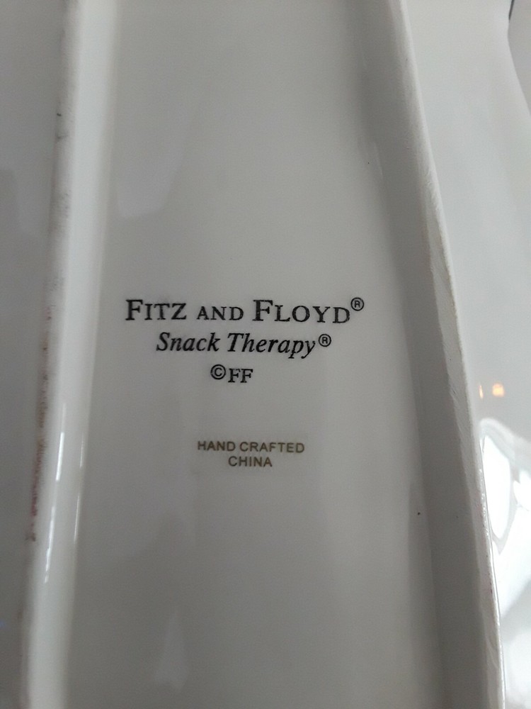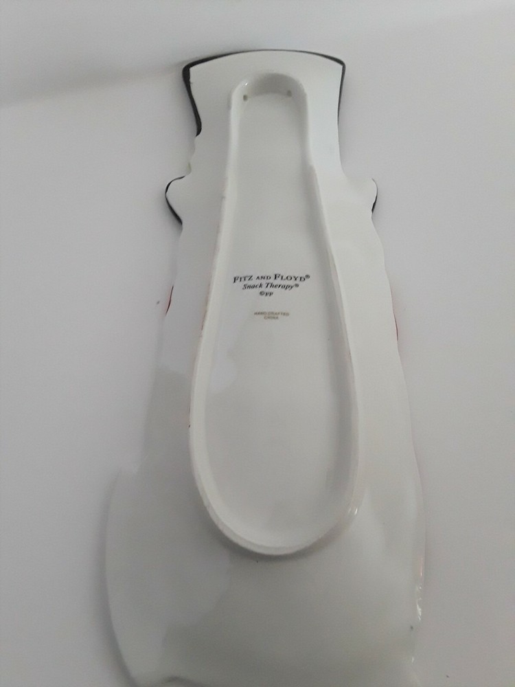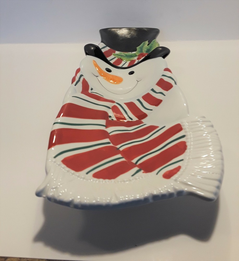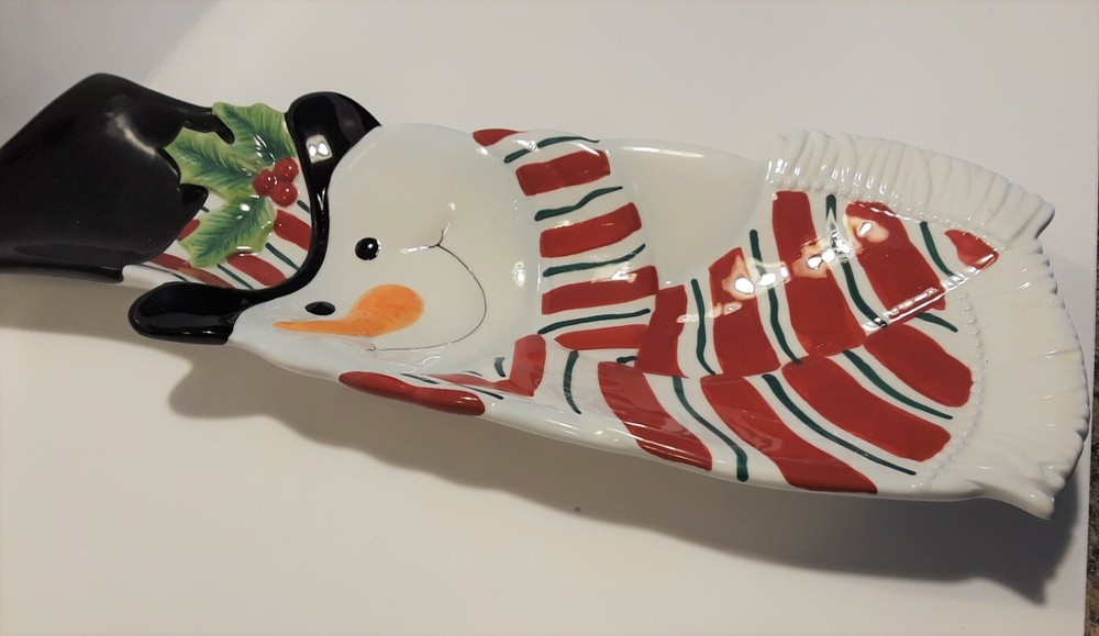 CUTE FITZ AND FLOYD Snowman Snack Therapy Server Tray Dish Plate Spoon Rest. Concave shape. 13 1/2" long and 4 1/2" wide. Excellent condition. No chips or cracks