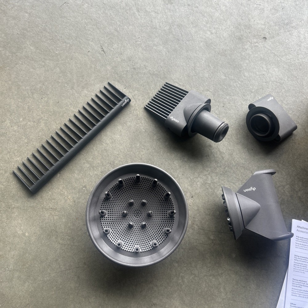FIVE Dyson Supersonic Hair Dryer Attachments + Case. (HAIR DRYER NOT INCLUDED). Doesn’t come with the gentle air attachment, instead it comes with the supersonic detangling comb