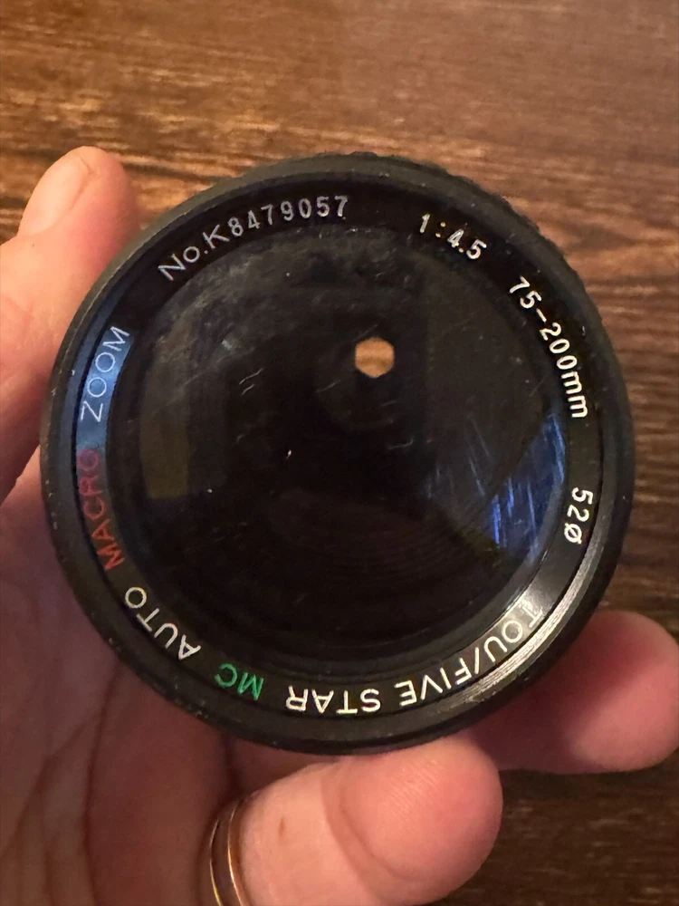 B79 Explore the world of close-up photography with the FIVE STAR Auto Macro Zoom Lens, designed for the discerning Minolta enthusiast. With a versatile 75-200mm focal length range, this lens is perfect for capturing detailed images from a variety of distances. Its f/4.5 maximum aperture ensures good low-light performance and a pleasing bokeh effect. Constructed with precision in Japan, this macro zoom lens mounts seamlessly onto Minolta M/MD systems. It features a robust manual focus for accuracy and is compatible with 52mm philtres, allowing photographers to further enhance their creative expression. Whether you're an amateur or a seasoned professional, this lens is a valuable addition to your photographic arsenal.