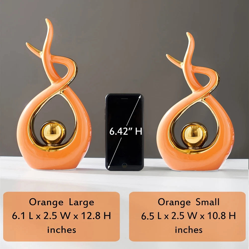 FJS Home Decor Modern Art Ceramic Statue, Orange Coffee Table Decor, Hous Decorations for Living Room Dining Room Table Centerpiece Bookshelf - Great Gift Idea 12.2" H Product Details Color: Orange Size: Large Brand: FJS UPC: 772728792375 EAN: 0772728792375 MPN: Does not apply Product Dimensions: 2.5 x 6.1 x 12.2 inches Item Weight: 1.41 pounds Manufacturer: FJS Country of Origin: China Date First Available: January 23, 2021 BEAUTIFUL LIVING ROOM DECORThe modern ceramic statue hous decorations living room piece measures 12.2" H x 6.1" L x 2.5" W. The size is just right so that it can be perfectly integrated with most lving room decorations. It can be a table centerpieces for dining room or living room or office decorations, coffee table decor, TV stand decorations, etc. EXQUISITE ORANGE DECOR Elegant ceramic art living room table decor is beautiful and eye-catching, with orange and gold as the main colors, presenting the beauty of modern art, the whole is plated and polished to give a mirror effect that will never fade. When you put it in a well-lit place in your living room or office, it will reflect bright colors and catch your eye as an impressive focal point. PREMIUM FEEL Modern statue home decor is made of ceramic material, fired at high temperature, smooth surface, comfortable to the touch, easy to clean, no odor, non-toxic and non-hazardous. The bottom of the statue is designed with soft cushion, can be placed steadily without slipping, but also to protect the furniture. UNIQUE GIFT Graceful ceramic sculpture decor is Eye-catching table Decorations for dining room, Stunning decor to display in your home, office, library or place of work great gift Idea. It can be taken as a tasteful present to friends, or a special piece for business occasions. A great option for special and festive occasions like Thanksgiving and Christmas, housewarming, holidays, corporate. DESIGNED TO IMPRESSThe art modern statue decoration every detail of the casting is carefully designed by the designer, sophisticated statue ornament, ideal for home decor, room decor, kitchen decor, bedroom decor, office decor, living room decor, family room decor, indoor decor, western decor, house decor, room decor, rustic home decor, apartment decor, modern decor.