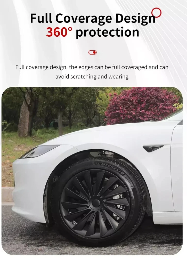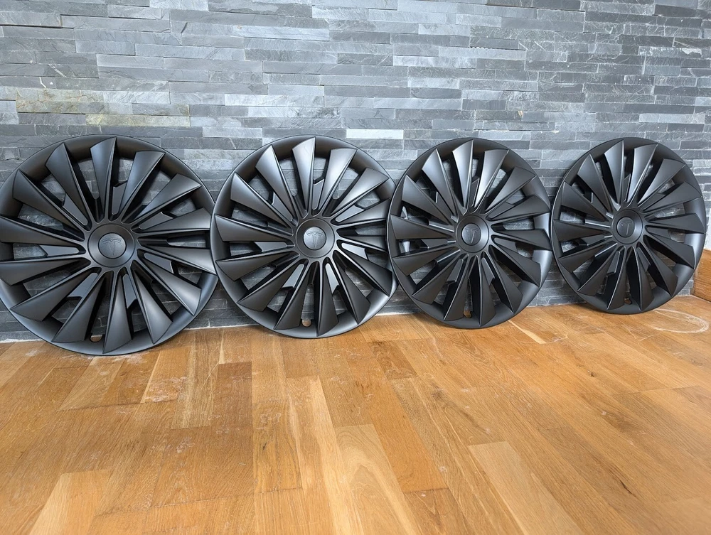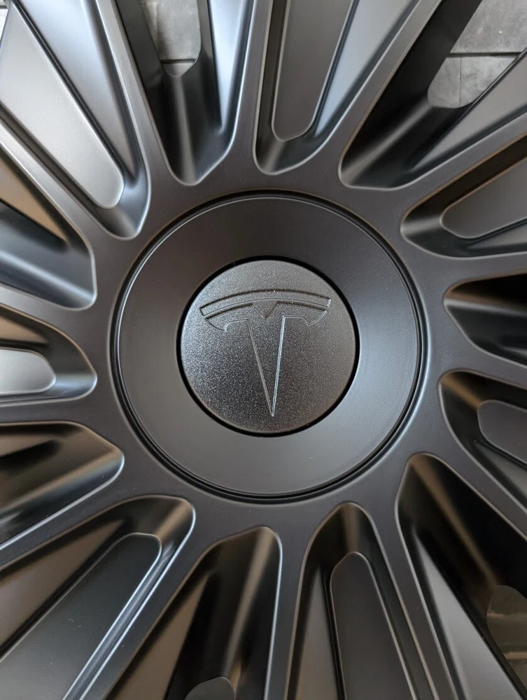 UK Exclusive Tesla Model 3 2024 HIGHLAND Matt black Induction Covers 4 x 18 Inch Wheel Covers / Hub Caps. Includes Tesla Logo. First in the UK for this Cover Style!! Will only fit a 2024 Model 3 HIGHLAND. Do not purchase if you have the classic Tesla. If your Model 3 does not have a TV screen for the back seats this will not fit. Tranforms the looks of your Tesla in 5 minutes: Matt Black - Matches Perfectly the other Matt Black trims on the wheel arches, windows, wing mirrors, handles etc. Logo Choice! Will be dispatched with the default MATT Tesla logo, however if you want the white Tesla logo please put a note on the order. Closest Match to the Tesla OEM Induction Wheel No Ugly Perforated Central Section Check out my ebay feedback - lots of happy owners saying how it transformed their Tesla Search electricwheels.store for more styles, pictures and free delivery UK Stock Means UK Stock Every wheel cover box is opened and inspected for damage before it is dispatched. High Quality -sold from a UK Private Seller Beware of unreputable eBay sellers who steal our photos (taken on the front drive of my house with my Tesla) and pretend to sell the same quality covers as we do. Fast Dispatch I will dispatch fast on a next day delivery service. Subject to the carrier doing their job you should get your hubcaps the next working day. Will it fit ? If you have a Tesla Model 3 Highland, with wheel covers like below this will 100% fit High Quality Includes the Tesla decal for the centre of the wheel cover - gives it the OEM Feel Designed to be aerodynamically efficient . Looks great but also great range. Not like the other "Photon" wheel covers where there are large holes on the wheel so you can see the silver alloy. These cover almost all the alloy - giving a performance look to the exterior of the car. These are not cheap "Halfords" type generic hub caps. 100% Designed for the Tesla Model 3 2024 (Highland) wheels. Beware of the cheaper alternatives, checkout the Tesla Facebook groups where owners tell stories of the alternatives falling off Just like the factory wheel covers, all 4 covers are identical. This means that the curve of the spokes will be towards the front on one side and the back on the others. This is typical of how wheel covers are sold. Protect your Tesla These wheel covers cover the entire alloy. Unlike the OEM wheel covers and cheap ebay covers which leave the edge exposed Because they cover the whole wheel any kerb rash will be taken up by the cover and not the underlying alloy No expensive end of lease charges when you hand back damaged alloys - put the OEM covers back on What's in the box ? 4 Hub Cap / Wheel Covers - Securely Packaged in Bubble Wrap Tape to protect alloy ( optional to fit ) Tesla “T” Logos Contact us We can be contacted at any time through messages if you have any questions, comments or product requests. We will respond to you within 24 hours and do our best to help you out! We encourage our customers to contact us with any questions or concerns! We'd like to be sure you are completely satisfied with your purchase.