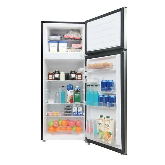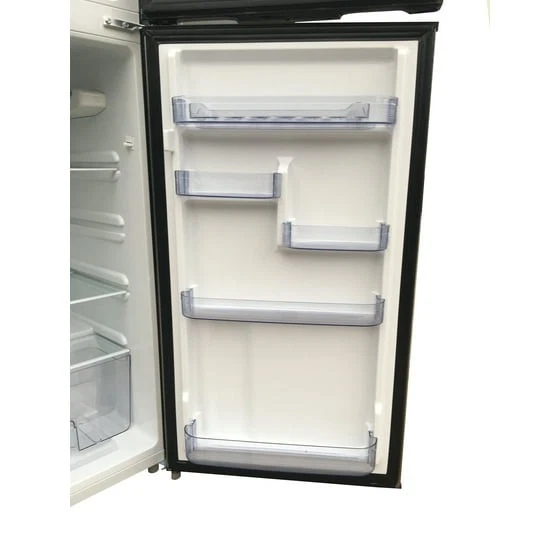 About this item Product details Your Frigidaire 7.5 cu. ft. Top-Freezer Refrigerator with Platinum design look features upfront temperature controls that make it simple to regulate both the fresh food and freezer sections. Adjustable shelves provide flexibility to meet your food storage needs. Combines easy-to-use features with practical design to complement any kitchen. Maintenance is easy with the convenient cycle defrost system and finding your favorite beverages is a breeze due to the tall bottle storage in the door. There are three adjustable glass refrigerator shelves and one adjustable/removable wire freezer shelf to provide maximum and versatile storage space. Your vegetables will stay cool and easy to find in the glass cover crisper. Left or right-handed opening is your choice with the reversible door hinge and this sturdy refrigerator can be installed against a wall with its smooth back design. 7.5 cu. ft. of standard storage capacity lets you stock up on all of your favorite foods Easily accessible temperature controls make temperature management easy New Spill-proof glass shelves contain spills and simplify cleanup, preventing liquids from leaking on to shelves below Sleek platinum design adds a touch of elegance to any space Transparent crisper for easy visibility and organization of fresh produce Interior light illuminates the contents for convenient access, even in low light Reversible door allows for flexible placement and convenient access options Dedicated freezer compartment for frozen food storage Adjustable and removable glass shelves for customizable storage options Full-width door bin for convenient storage of bottles and larger items More details Volts 115 V Brand Frigidaire Model EFR780-6COM Refrigerator Feature Freezer, Reversible Door Hinges Assembled Product Weight 83 lb Manufacturer Part Number EFR780-6COM Manufacturer CURTIS INTERNATIONAL LTD. Number of Shelves 4 Shelf Material Glass Number of Drawers 1 Number of Bins 5 Installation Type Freestanding Assembled Product Dimensions (L x W x H) 21.50 x 21.45 x 55.50 Inches