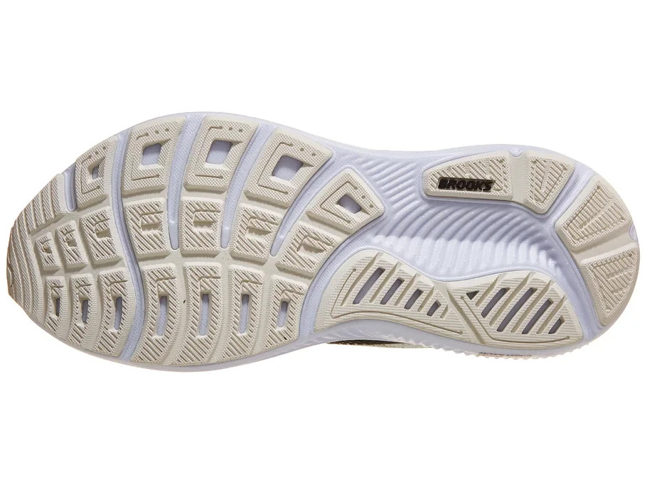 Brooks Ghost 17 Women's Shoes - White/Black/Rose Gold The Brooks Ghost 17 is built for those who seek a smooth and cushioned experience during daily runs, walks, or casual wear. At the heart of this shoe is the nitrogen-infused DNA LOFT v3 midsole, which provides soft lightweight cushioning that lasts mile after mile. With the addition of a little extra cushioning, especially under your forefoot, you'll experience superior comfort whether you're hitting longer miles on the pavement or taking it easy. The shoe's updated 10 mm offset ensures a balanced feel, while the carefully engineered flex grooves align with the natural motion of your foot, promoting smooth transitions from heel strike to toe-off. The wider base of support in both the forefoot and heel offers inherent stability to ensure you feel secure during every run or walk. The upper construction features a double jacquard air mesh that provides breathability, while the kickback collar adds a layer of comfort and structure, hugging your foot securely. From top to bottom, the Brooks Ghost 17 is a can't-go-wrong choice for anyone seeking a comfortable, reliable, and versatile daily trainer. What You'll Love: Extra cushioning for improved shock absorption Newly designed midsole flex grooves allow a natural flow with every step Wider supportive base keeps you sure-footed and steady on every stride MIDSOLE DNA LOFT v3 employs a large cell foaming process for nitrogen-injected cushioning with increased softness and lighter weight. OUTSOLE RoadTack rubber enhances durability while maintaining a lightweight construction. UPPER Double jacquard air mesh blends comfort and structure while ensuring a secure fit.