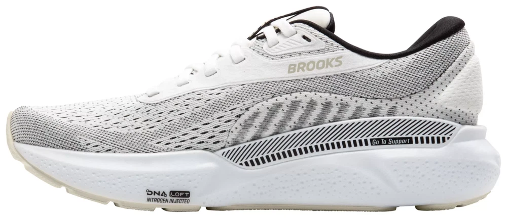 Product Information Design: Engineered air mesh upper provides breathability, stretch, and structure for an accommodating fit GuideRails® holistic support system adds support by keeping excess movement in check, aiding your feet, knees, and hips In-Shoe Comfort: Nitrogen-infused DNA LOFT v3 midsole foam delivers soft, smooth cushioning that adapts to your unique stride for lightweight comfort mile after mile Durability & Traction: RoadTack Rubber outsole is made with recycled materials and offers lightweight durability and rebound. Additional Details: Best For: Road running, walking Midsole Drop: 12.0mm Weight: 8.8oz Brand : Brooks