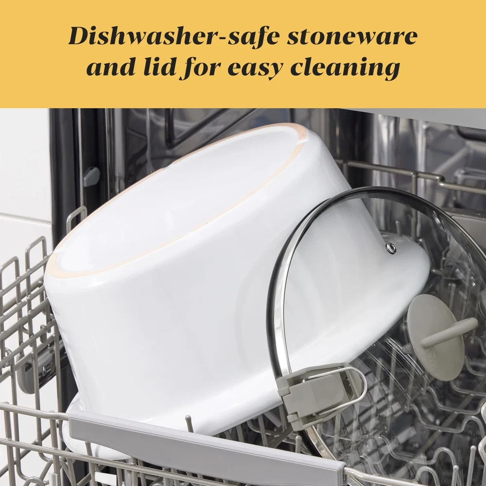 Cook & Carry Locking Lid: Travel-proof locking lid features a tight seal that prevents leaks and spills, for mess-free travel when you're on the go Customized Cook Time: Programmable cooking control lets you customize your cook time from 30 minutes up to 20 hours Digital Display: Digital countdown display easily monitors and tracks cook time Large Capacity: 7-quart size feeds 9+ people, perfect for family meals, potlucks, or feeding a crowd Auto-Warm Setting : Auto-Warm setting keeps food at serving temperature until it's time to eat, and can also be used as a food warmer Oven-Safe Stoneware: Removable stoneware is oven-safe up to 400 degrees F Dishwasher-Safe: Stoneware and lid are both dishwasher-safe, for easy cleanup after cooking is complete Model #: 2193800 Capacity: 7 qt