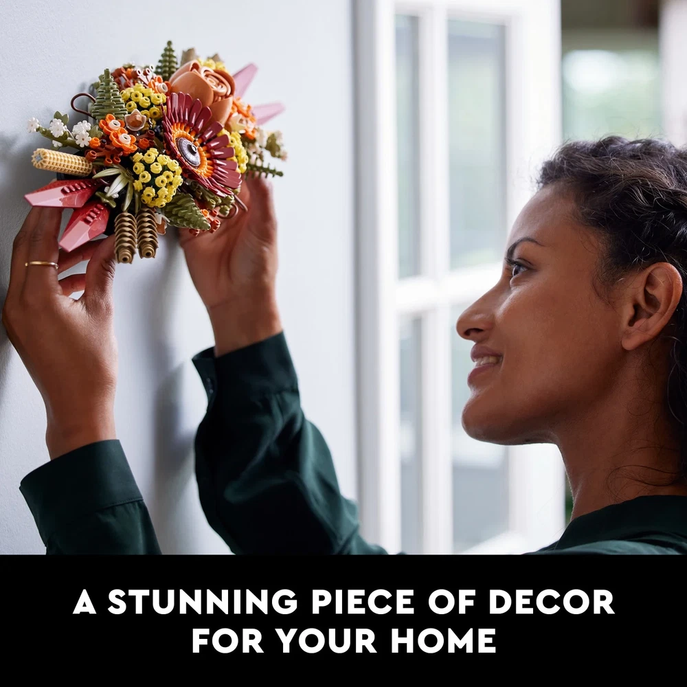 Cultivate Creativity – Build and display a beautiful LEGO Icons Dried Flower Centerpiece (10314) with this mindful building project for adults. Inspire creativity and imagination with this unique flower kit. Fall Inspiration – This flower gift building kit is full of vibrant blooms and warm colors inspired by the beauty of autumn. With a gerbera and rose as its focal point, it's perfect for any fall decoration theme Build Together – The model has a split design, so you and a loved one can enjoy building and bonding together. Spend quality time while you relax and let your creativity bloom Versatile Decor – Once complete, the model can be used as a table centerpiece, hung on a wall, or combined with one or more sets to create a large flower decor display Flower lovers – Florists and flower lovers alike will appreciate this LEGO Icons Dried Flower Centerpiece. Makes a great table centerpiece to compliment your Fall and Thanksgiving decor Perfect Gift – This DIY set of artificial LEGO flowers will make a great surprise for loved ones as a birthday, anniversary, housewarming, Mother's Day, Thanksgiving or Valentine gift. Mindful building – Whether you're a seasoned builder or just starting, this LEGO kit offers a fun and mindful way to spend your time. Enjoy the process of building and creating something beautiful that you can display in your home or office.