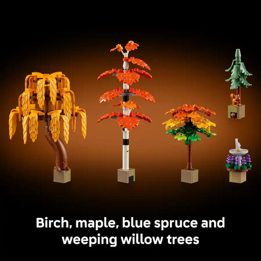 LEGO - Icons Autumn Cottage Garden Building Set 11372 Capture the essence of fall with the LEGO Icons Autumn Cottage Garden (11372) model building kit for adults. Craft a seasonal centerpiece bursting with fall colors. Unwind as you build each intricate detail, then rearrange the trees, plants and cottagecore decor elements to create a vibrant display for the home or office. Inspired by storybook cottages, this addition to the Gardens of the World collection features birch, weeping willow, blue spruce and maple trees, plus seasonal flowers. Other highlights include a sundial, birdhouse, vegetable cart, a garden gnome and a stream with stepping stones. A cottage with a cozy kitchen and woodland creatures including robin and nuthatch birds, a squirrel, frog, and snail add the final touches to this model. Once completed, your finished cottage garden doubles as room decor that's perfect for displaying in the bedroom, office or on a book shelf. Makes a perfect birthday or housewarming gift for adults who enjoy mindful building projects. Build smarter with the LEGO Builder app – zoom, rotate in 3D, track your progress and follow step-by-step digital instructions. Contains 1,102 pieces.