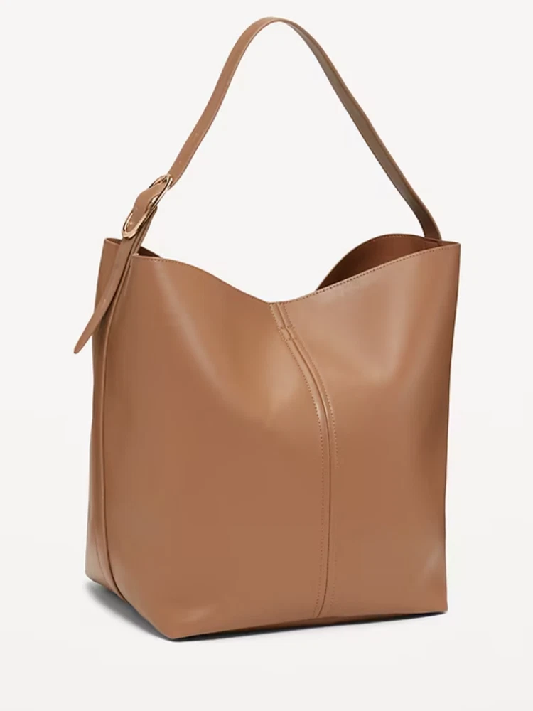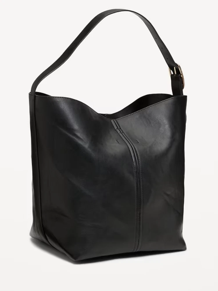 Product details adjustable buckle strap center seam detail #806196 Size & fit 10" wide 10.5" long 14.5" high Fabric & care faux leather 100% synthetic materials imported