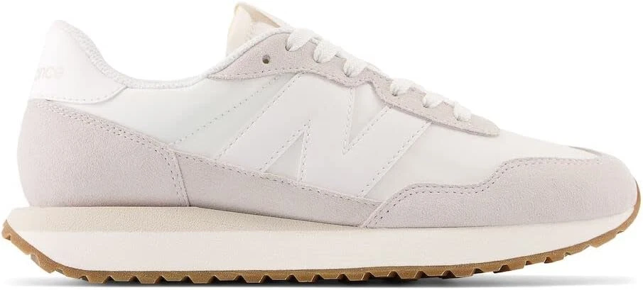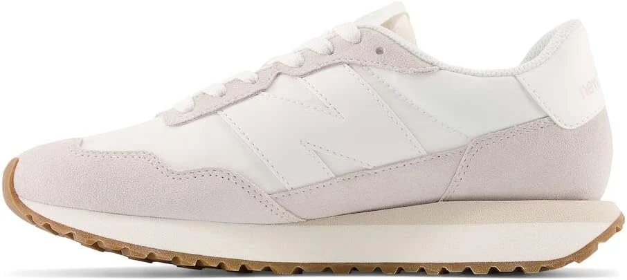 Step on in confidence and style with these vintage-inspired yet contemporary New Balance 237 Women's Running Shoes. TECHNOLOGIES & FEATURES Gator inspired foxing and mudguard Asymmetric rubber tip wrap Oversized N logo with large scale ripple branded outsole Breathable design for comfort on your runs DETAILS Nylon, suede upper Polyester mesh lining Large scale herringbone ripple outsole with text branding EVA midsole Foam footbed Round toe style Lace-up closure Removable insole Spot clean Imported