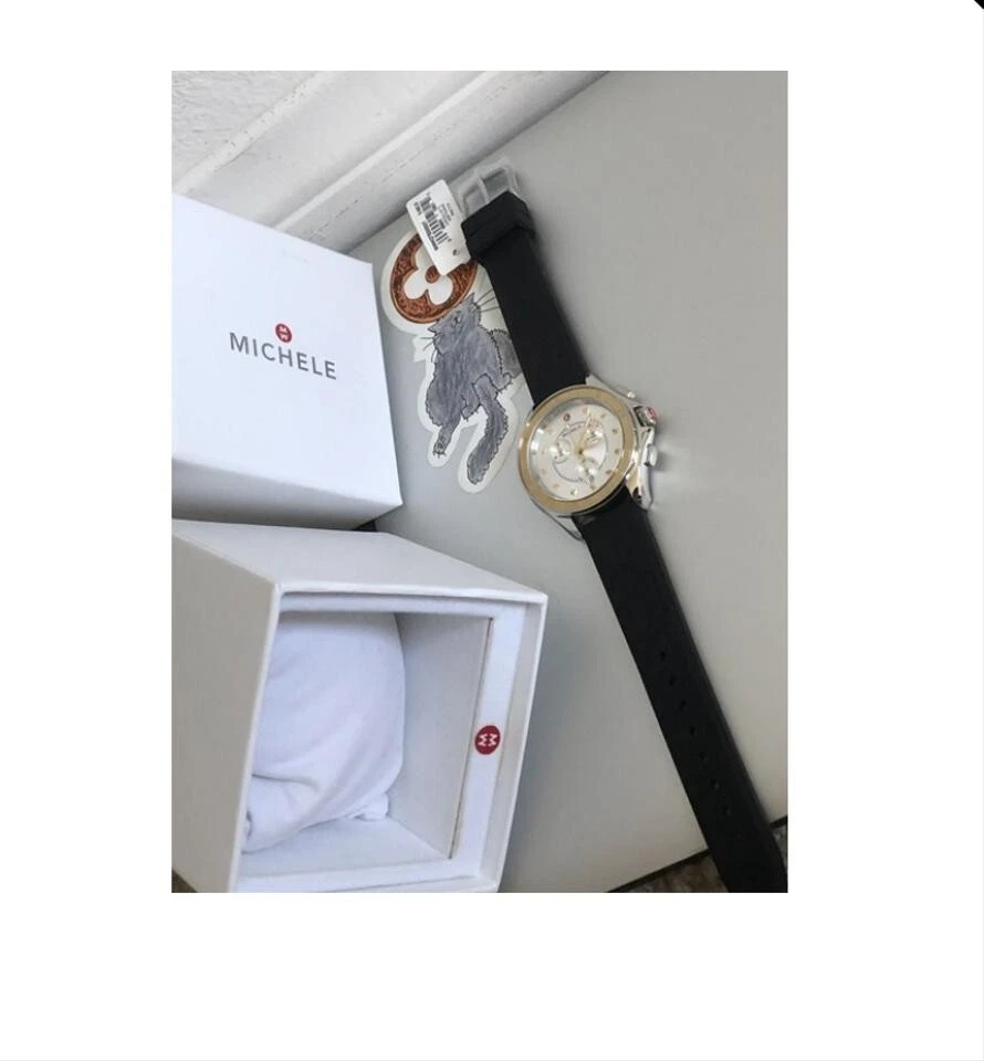 This Cape Watch charms with a stainless case, gold reflector topring and silver white sunray dial accented with honey topaz stones. Paired with a black silicone strap for a playful and luxurious look, the18mm strap is made specifically for the Cape collection and is interchangeable with any 18mm MICHELE strap Case Size 40 mm x 37 mm Water Resistant: 5 ATM Strap Size: 18 mm Style #:MWW27E000007