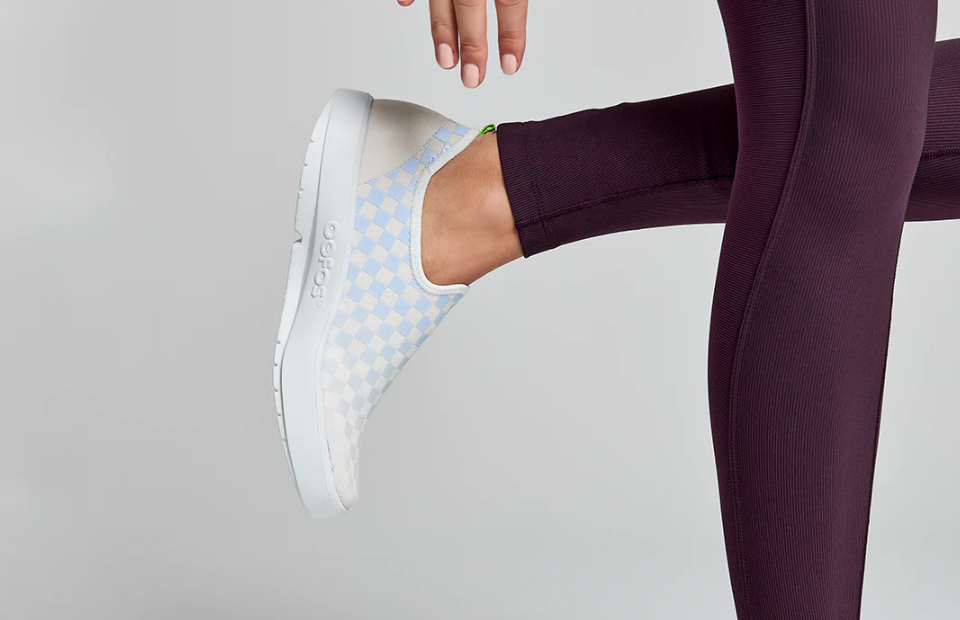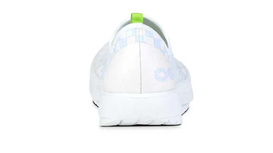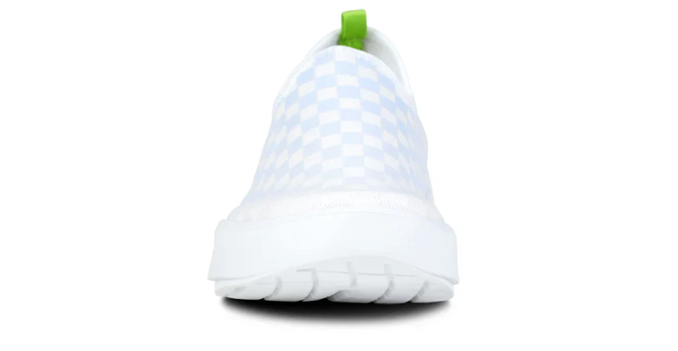 FLASH SALE OOFOS Women's OOmg eeZee Low Shoe - Purple Jade Checker (Authentic) Please note: OOFOS recommends buying half a size up in this style. A different take on the classic, made with a unique 4-way stretch woven canvas-like material, these shoes contour the entire foot. OOfoam™ Technology Revolutionary OOfoam™ technology absorbs 37% more impact than traditional footwear foam materials to reduce the stress on your feet and joints. Superior Quality OOfoam™ technology absorbs 37% more impact than traditional footwear. Patented footbed design reduces stress on knees, ankles and other joints. Closed-cell foam is machine washable and designed to minimize odor. Feel the OO Promise Try any pair for 30 days risk free. If you`re not 100% satisfied, you can send them back at no cost.