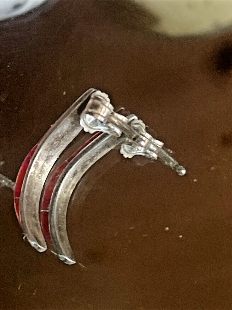 FLASH SALE! Old Zuni Red Fire Opal Sterling Silver Needlepoint Inlay Earrings