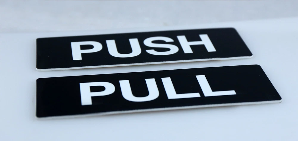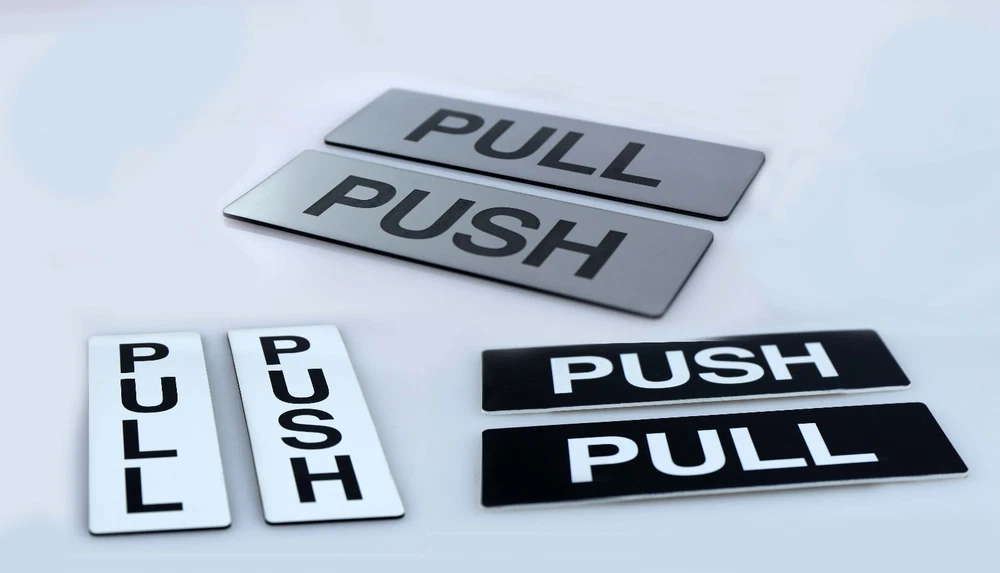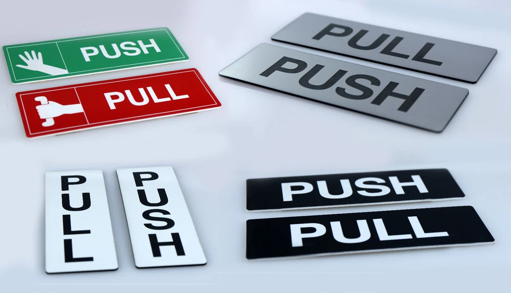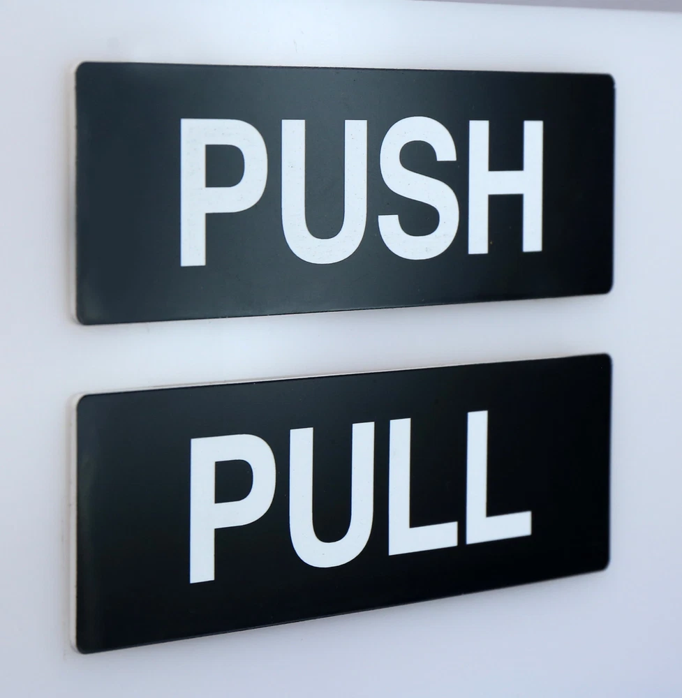 Subject: push and pull MPN: Does Not Apply, Not Applicable Modified Item: No Type: Door Signs/Plaques Room: Any Room Shape: Rectangle Character Family: Not Applicable Features: Custom Made, Personalised, Engraved, Adhesive Style: Traditional Non-Domestic Product: No Size: your choice Brand: Visual Art Material: Plastic Custom Bundle: No Mounting: Door Mounted, Wall Mounted Theme: Caution & Safety Additional Parts Required: No Department: business Engraved: Yes