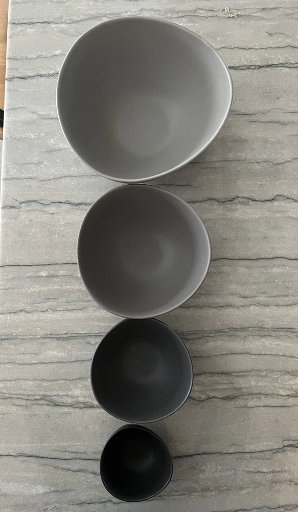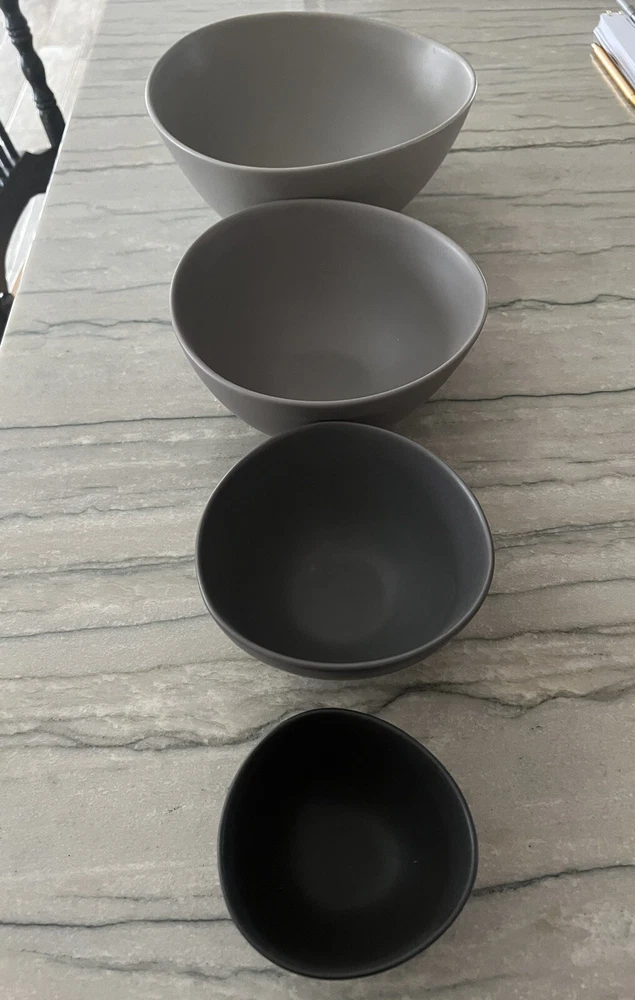Occasion:All OccasionsShape:RoundType:Serving BowlSet Includes:Bowl SetColor:GrayNumber of Items in Set:Four-PieceFinish:MatteTime Period Manufactured:2010-2019Era:21st Century (2000-now)Production Technique:PotteryMaterial:PotteryVintage:NoAntique:NoBrand:Pottery BarnHandmade:No