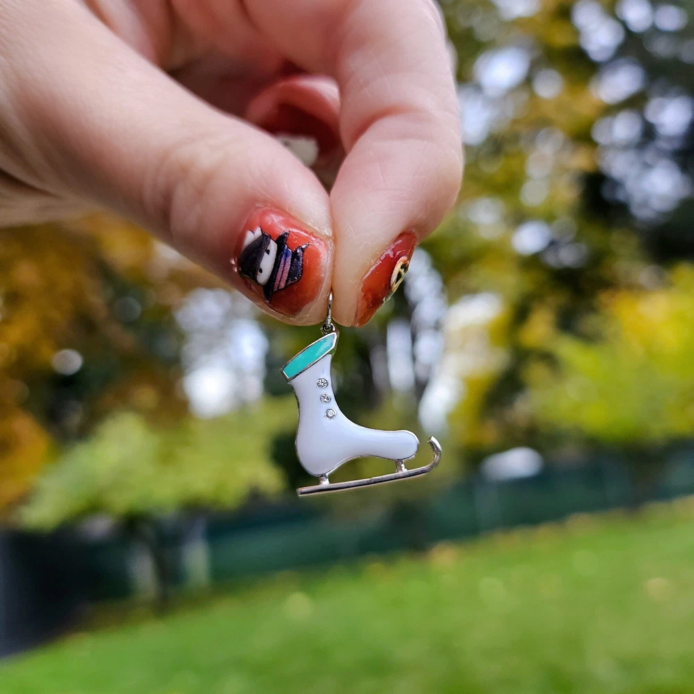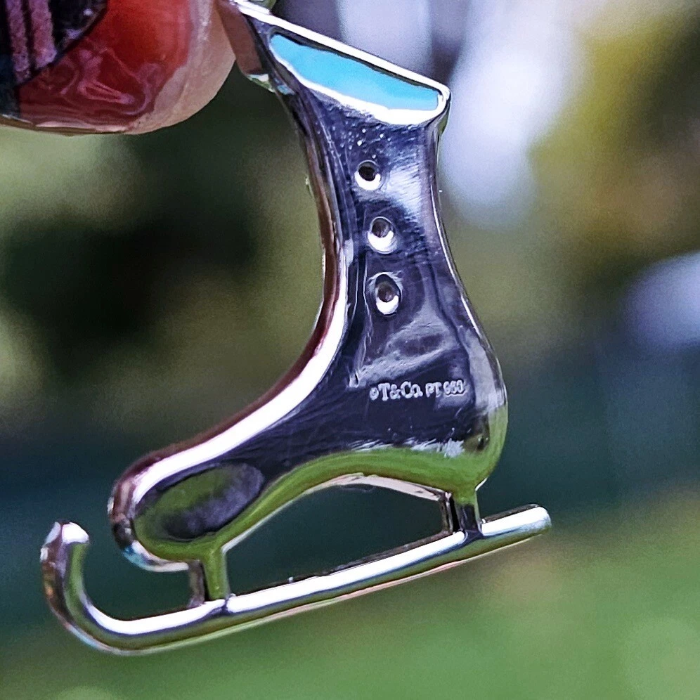 🩵FLASH SALE🩵 Introducing a highly sought-after piece from Tiffany & Co., this exquisite platinum enamel charm/ pendant features a beautiful ice skate design. It is intricately crafted with 950 metal purity and adorned with 3 sparkling round diamonds. This rare piece is a perfect addition to any jewelry collection and a unique gift for any occasion. Like new condition. May have light scratches from storage. The same one currently goes for $1795. My loss is your gain! Comes with a vintage Tiffany blue paper box. ʕ•ᴥ•ʔ✿ NOTE: I've been a Tiffany lover and collector since 2018. I truly enjoy sharing beautiful, authentic Tiffany & Co. items with others and to support my “blue box” passion. All sales are final, and no returns are accepted for any reason. If a return is requested, a 20% restocking fee will apply. I ensure each item is exactly as described and shown in the photos, so please take a moment to read the descriptions and review the photos carefully. I also record a video before shipping to guarantee everything is in perfect order. ♡ 5-⭐️star rating would be much appreciated! Please ask me if you have any questions before purchase. Thank you!