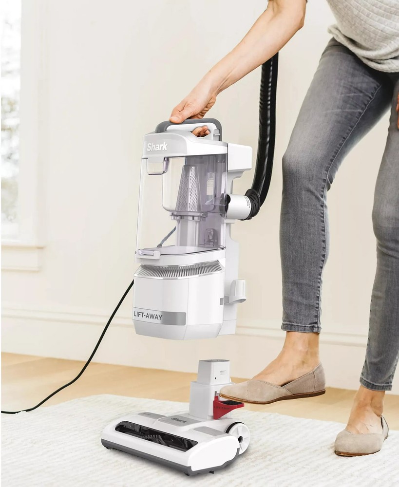 The Shark Navigator Lift-Away ADV Upright Vacuum features a lighter and easier-to-detach Lift-Away pod for go-anywhere cleaning. Features Product dimension: 10"L x 12"W x 46.5"H Product weight: 12.3 lbs. Lift-Away the detachable pod with the easy-to-use pod-release pedal to clean stairs, furniture, and more. Deep cleaning on carpets, strong suction on hard floors, and powerful pet hair pickup. Anti-Allergen Complete Seal Technology and HEPA filter trap 99.9% of dust and allergens inside the vacuum cleaner. (based on ASTM F1977 down to .3 microns) A lighter pod than Shark's best-selling Lift-Away, with more suction for versatile whole-home cleaning. (weight and suction vs. NV351, suction measured at the hose) Advanced swivel steering lets you easily maneuver your vacuum in and out of tight spaces, around furniture, and more. Includes tools to tackle stubborn pet hair and hard-to-reach spaces. Metal, Plastic, Rubber Wipe clean