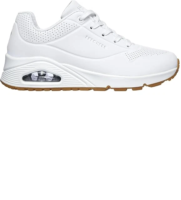 Classic air cushioned style meets updated comfort in these Skechers Street Uno sneakers. SHOE FEATURES Smooth leather-textured synthetic upper in a lace up classic fashion sneaker with stitching and perforation accents Classic style midsole with embossed texture detail Midsole with visible air cushioned shock absorbing heel pad Air Cooled Memory Foam insole SHOE CONSTRUCTION Faux leather upper Polyester lining Rubber outsole SHOE DETAILS Lace-up closure Foam footbed 1.50-in. heel height Spot clean