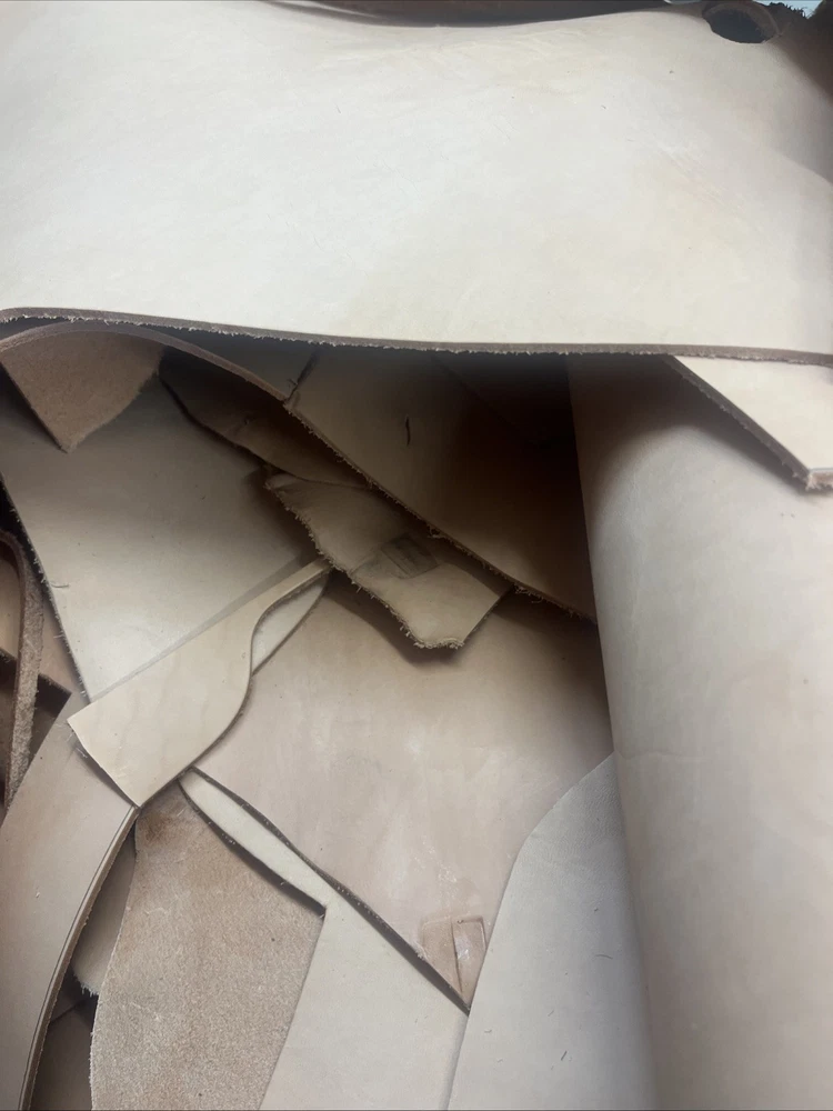 This product is a lightweight 1lb veg tan leather remnant from the United States, with a 2mm thickness. It is of great quality and suitable for various crafts such as upholstery, furniture making, belts, footwear, handbags, and more. The remnant is full-grain, handmade, and vegetable-tanned, providing a unique natural print and a lightweight feel at 9-10oz . Perfect for a wide range of leathercraft projects. DETAILSLightweight Veg Tan Remnants - 1 lbs About one to two pounds of vegetable tanned leather pieces that are great for small projects like linings, wallet backs, embossing, notebook covers and much more. These are lightweight pieces (9-10 oz.) that are a mix of import veg tan and Hermann Oak leather. Naturally great for tooling. Total accumulation of pieces is roughly 8 sq. ft. of leather. No returns or exchanges all sales final