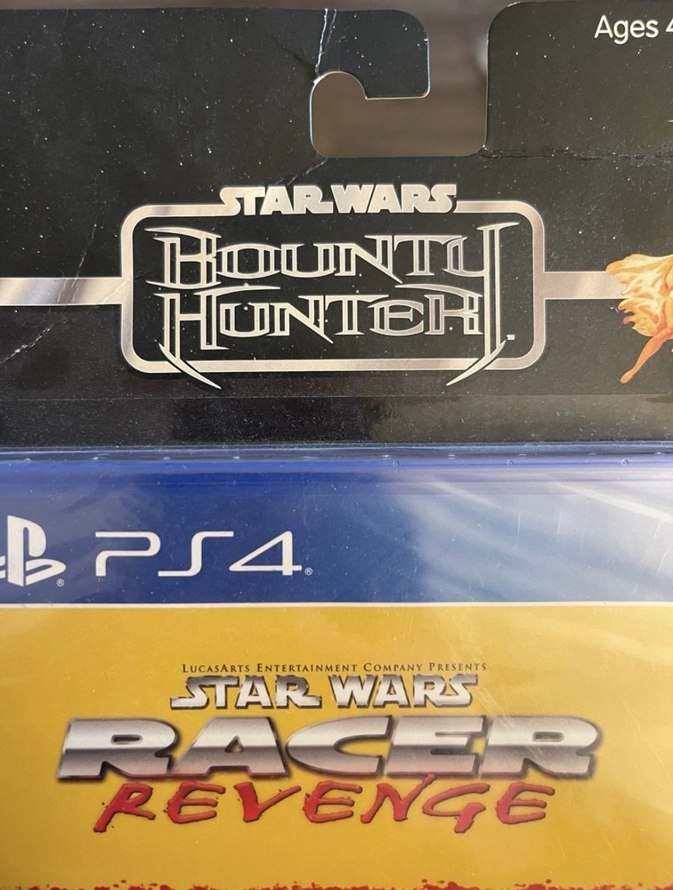 Brand new and unopened Limited Run Games Star Wars Racers Revenge for the Playstation 4. This is a misprint/error with the Star Wars Racers Revenge game inside of a Star Wars Bounty Hunter blister pack. Cardboard is not mint. DUE TO THIS BEING USED TO JAILBREAK PS5s, THERE ARE ABSOLUTELY NO RETURNS FOR ANY REASON IF OPENED. Please check all pictures carefully to see the exact condition of the item. Order will be shipped via signature required to make sure it arrives to the right individual. Please message if you have any questions