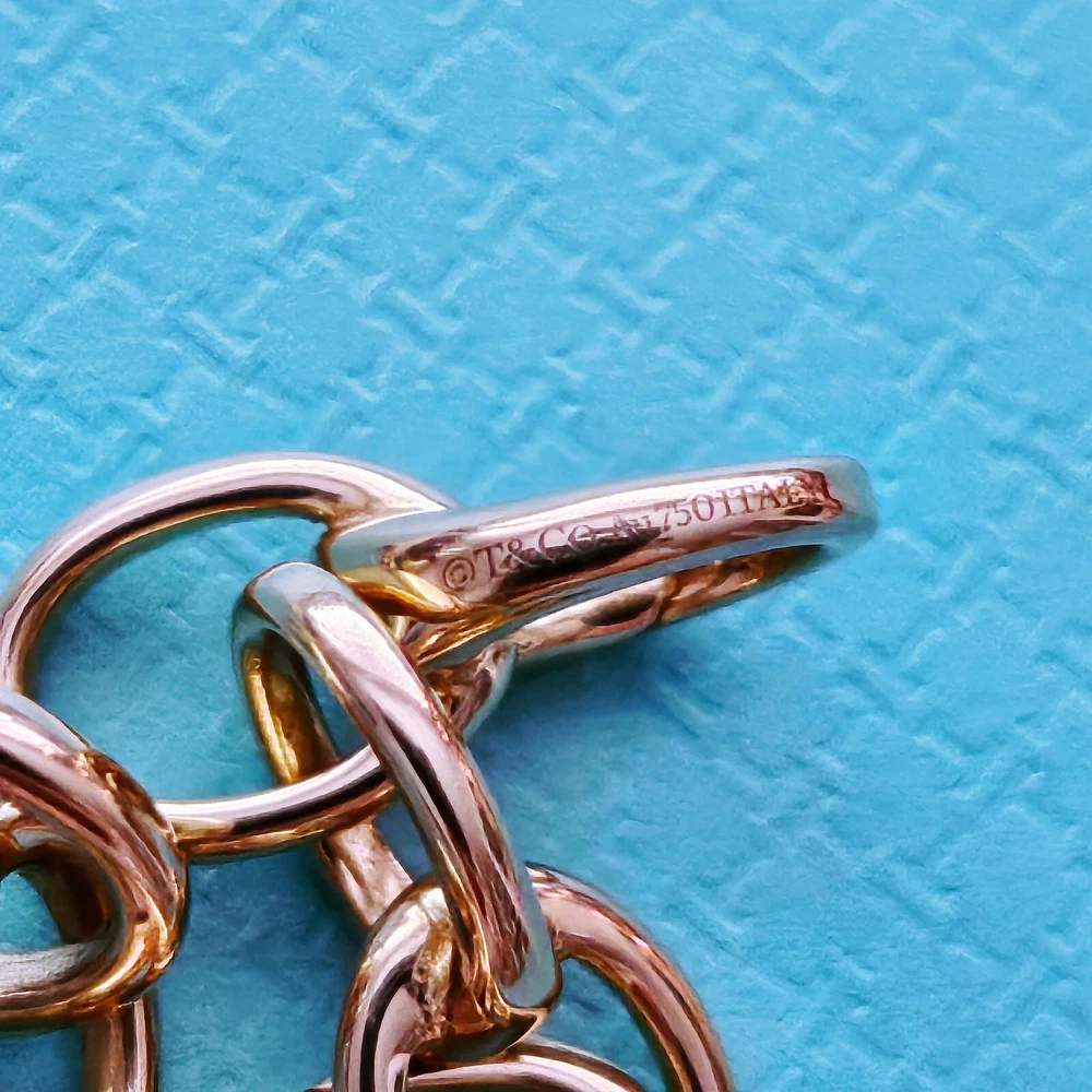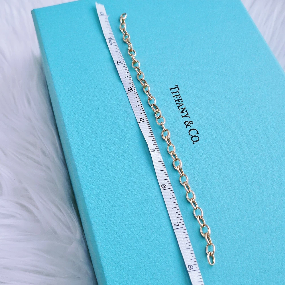 🩵FLASH SALE🩵 For those who love elegant and delicate bracelets, this smaller version of the Tiffany & Co. oval clasping link bracelet is perfect for you. It’s no longer available in stores or on the website! I have listed photos for size comparison with another style of the oval bracelet. 18k rose gold. Approximately 8 inches long with 9 openable links (every 4 links); Width 0.2 inches. Each link can be opened, allowing you to lengthen the bracelet, add charms, or wear it on its own. In good condition, may have scratches from normal wear. Please zoom in on every photo as a part of description. Comes with Tiffany black suede box as shown. The absolute favorite gold bracelet ever for any collectors. ʕ•ᴥ•ʔ✿ NOTE: I've been a Tiffany lover and collector since 2018. I truly enjoy sharing beautiful, authentic Tiffany & Co. items with others and to support my “blue box” passion. All sales are final, and no returns are accepted for any reason. If a return is requested, a 20% restocking fee will apply. I ensure each item is exactly as described and shown in the photos, so please take a moment to read the descriptions and review the photos carefully. I also record a video before shipping to guarantee everything is in perfect order. ♡ 5-⭐️star rating would be much appreciated! Please ask me if you have any questions before purchase. Thank you!