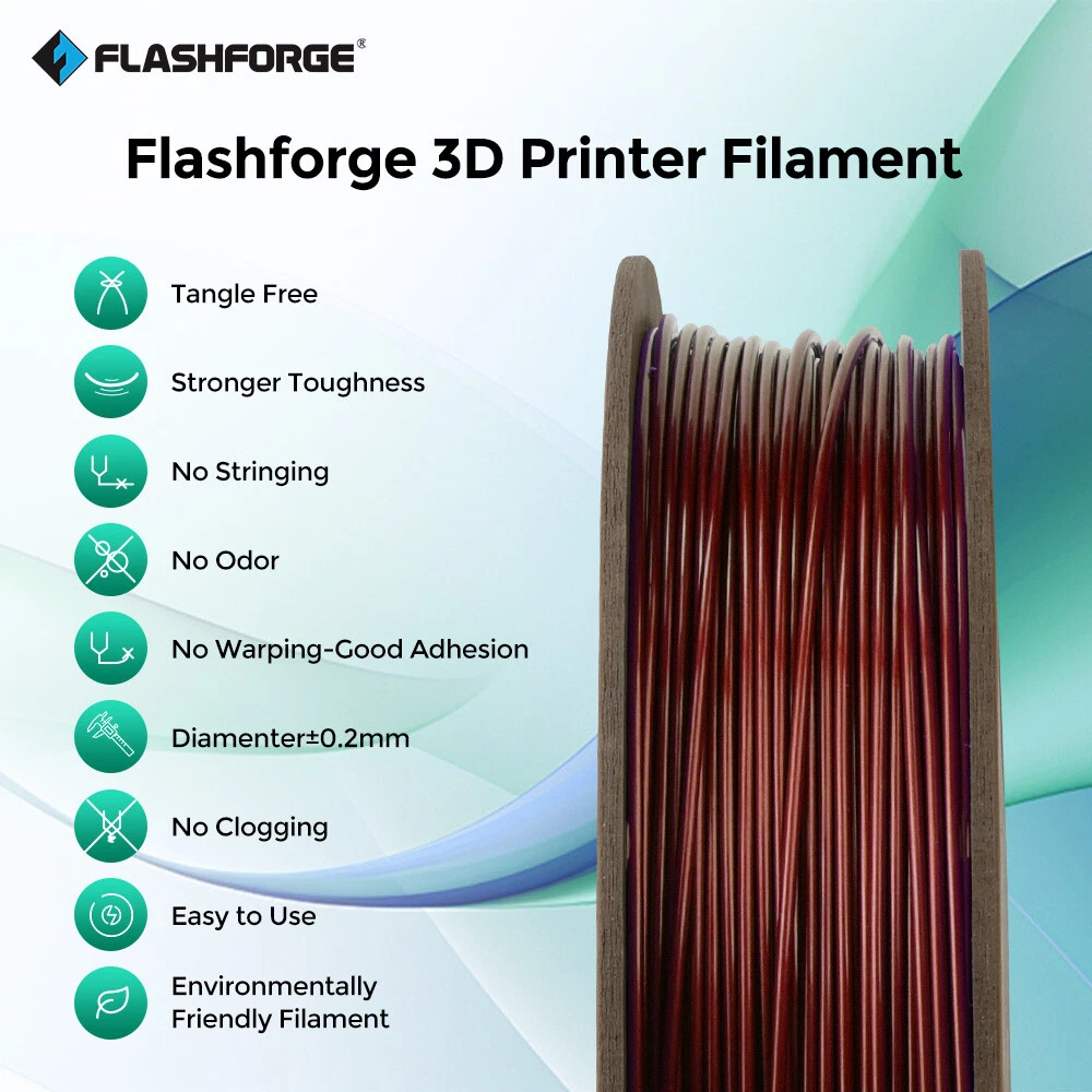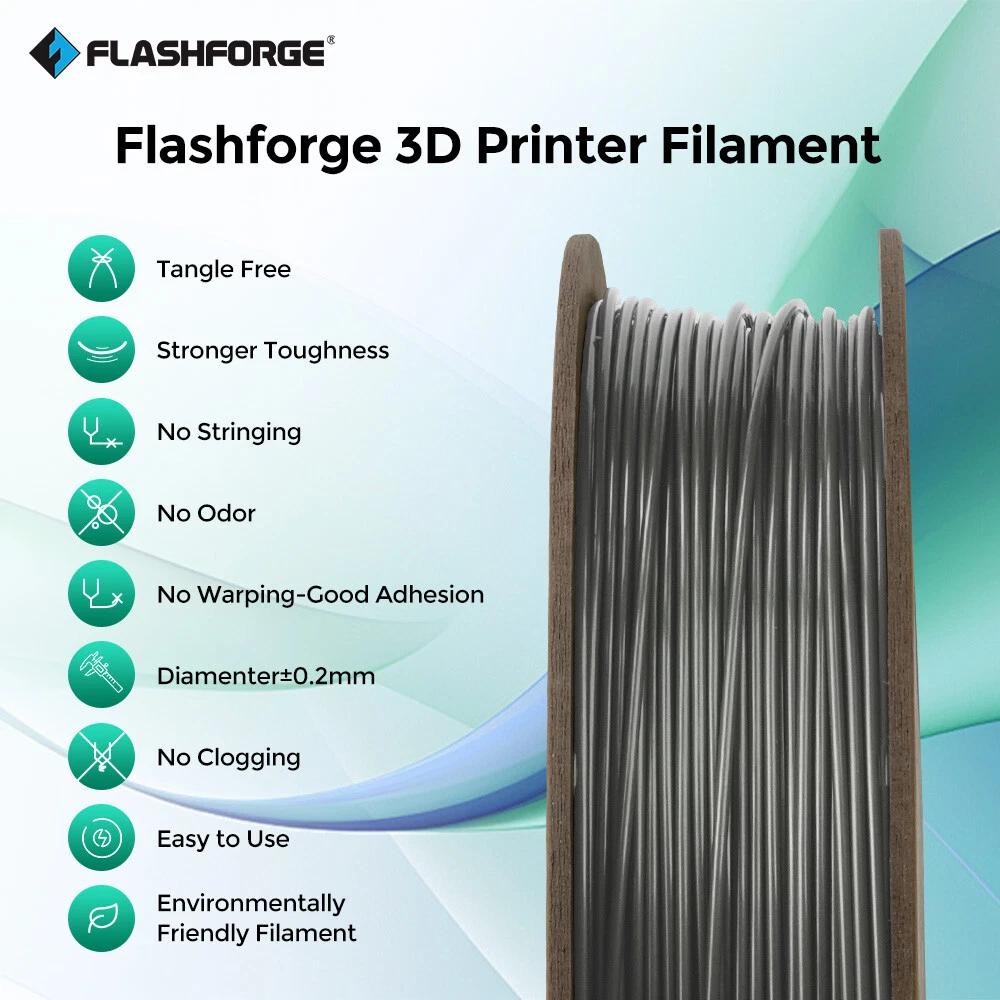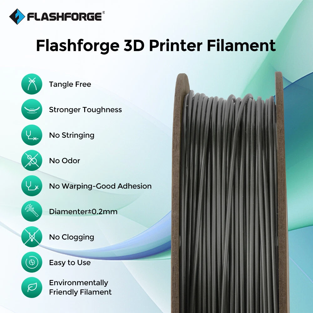 FLASHFORGE PLA+ PEGT+ Silk PLA ASA ABS Pro Filament 1.75mm 3D Printer Filament Description: Package Include: 1 X Filament (Roll) Payment Shipping Returns About us Contact us Payment 1.We accept Paypal,Google Pay,CreditCard,Visa,MasterCard,etc. 2.Payment must be within 8 days after you ordered the item. 3.Make sure you select the correct Postal address when paying for this item. 4.We are not responsible for Import duties, taxes and charges. Shipping Shipping Day are Monday to Friday, excluding Saturday, Sunday and Holiday declared by the carrier. Your order will be ship out within 1-3 business days. Please ensure your shipping address is correct before ordering. We are not responsible for undeliverable address. We reserve the right to charge the shipping fee again for returned items due to wrong address. Returns 1.We offer 30 days return policy. Please contact us within 30 days from the date you receive your order if you have any issues with the product and would like to return. 2.All returned items MUST BE in the original packaging and you MUST PROVIDE us with the shipping tracking number, specific reason for the return, and your eBay ID. 3.We will refund YOUR FULL WINNING BID AMOUNT, upon receipt of the item in its original condition and packaging with all components and accessories included, AFTER BOTH Buyer and Seller cancel the transaction from eBay. OR, you may choose to have a replacement 4.Buyer is responsible for return shipping cost. About us Established in 2011, FLASHFORGE is one of the first professional 3D printing equipment and materials R&D and manufacturing enterprises in China. At present it is the domestic first, ranking third in consumer-level 3D printing brand manufacturers globally. (Data source 3D Hubs). And, Flashforge was awarded the title of "Famous brand in Zhejiang Province" in 2017. As an R&D and manufacturing enterprise providing products and solutions for the whole industrial chain, Flashforge presently owns 10 product categories, extending from 3D printers, 3D printing filament, and 3D designing software to 3D printing services, providing dozens of types of products, covering the complete industrial chain. Products are divided into three levels: industry level, commercial level, and civil level, meeting the needs of different types of users. Meanwhile, Flashforge is at the industry-leading level in technology R&D, channel construction, after-sales service, and other aspects. Contact us All eBay messages will be replied within 24 hours or sooner during working days. Your satisfaction is our priority. If you have any questions about the products, please feel no hesitation to contact us, we will try our best to solve them. Looking forward to your messages!