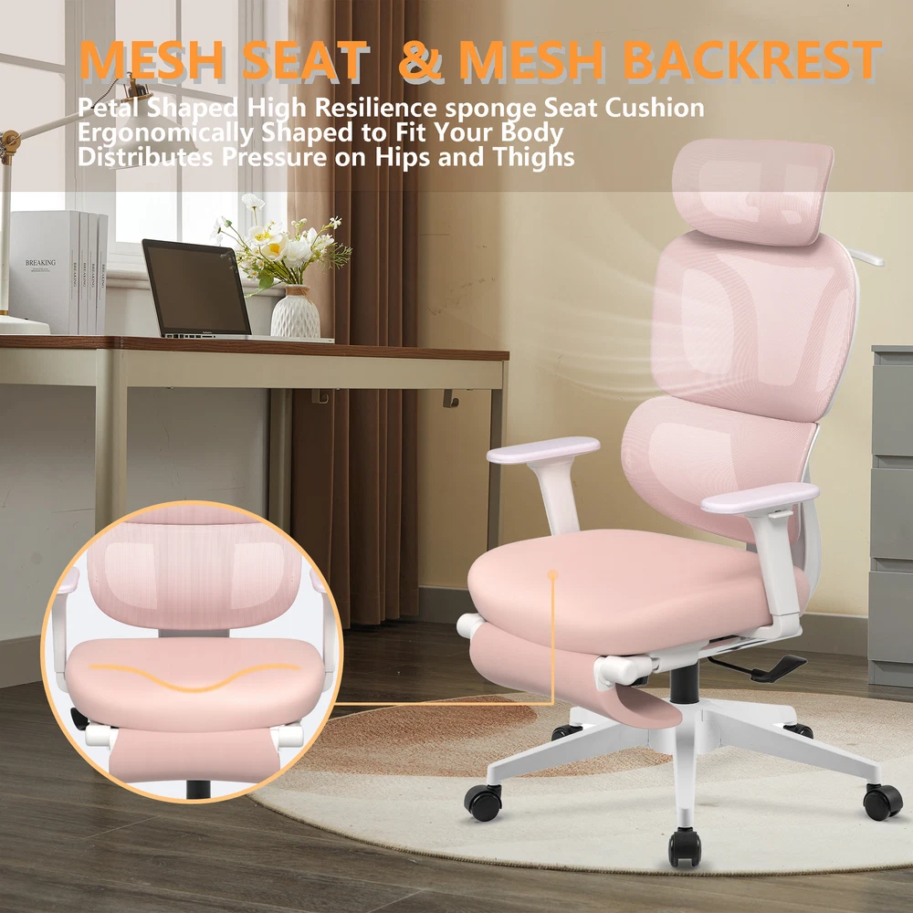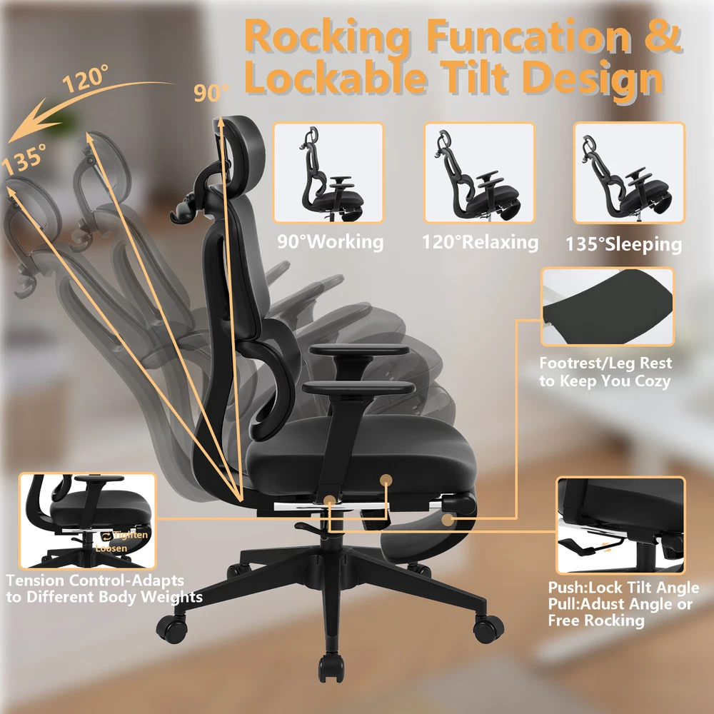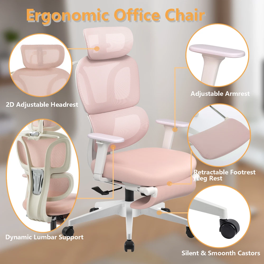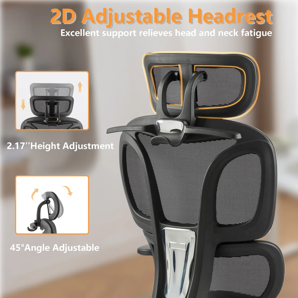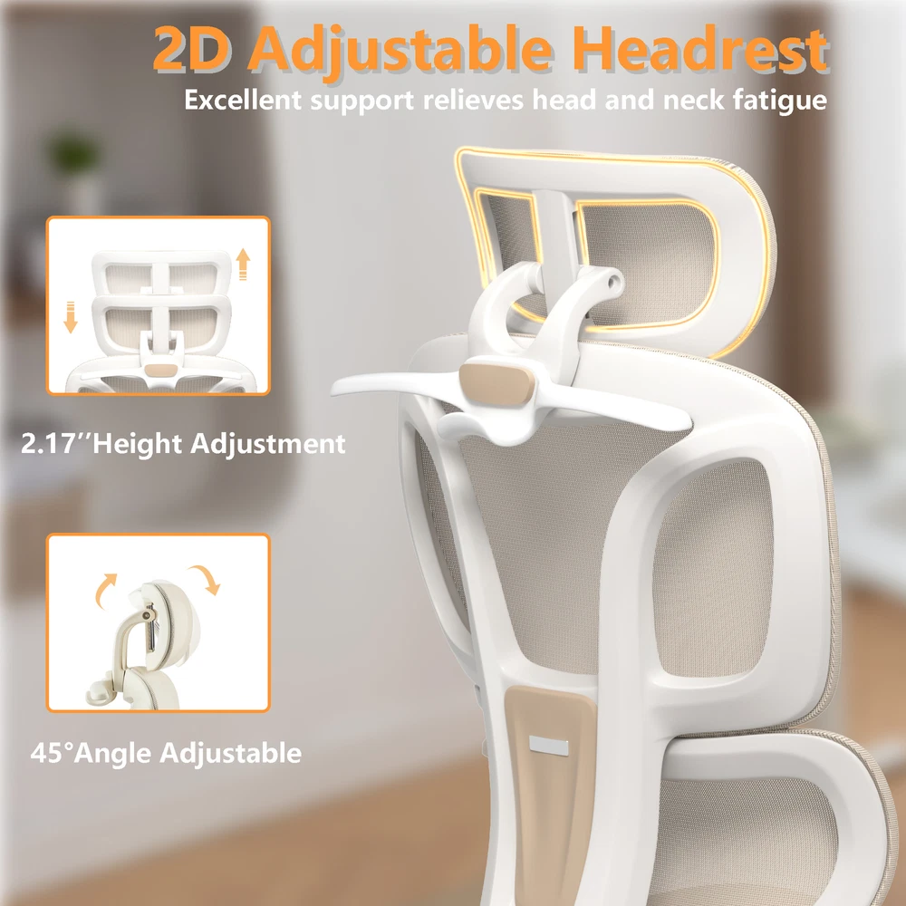 【 Customizable Comfort 】Featuring adjustable seat depth (20.8"-22"), height (20.1"-22.4"), and tilt functions to ensure a perfect fit for users between 5'1" and 6'2". 【 Enhanced Ergonomics 】 Dynamic lumbar support, 5-level adjustable back, a 3D adjustable headrest, nap footrest and tilt provide superior back and neck support for long hours. 【 3D Armrests 】Fully adjustable armrests (height, forward/back, and swivel) allow for precise positioning to reduce arm strain during extended use. 【 Breathable & Durable Design 】Choose between a mesh seat for cooling airflow or a cushioned foam seat for cradled support, with premium materials & class 4 gas lift built to last. 【 Optional Footrest 】Retractable footrest available for added relaxation—perfect for breaks or reclined seating, paired with a sleek modern design that suits any workspace. Details: Product Height: 43.7" - 52.4" Product Dimensions: 27.8" D× 27.8 " W× 52.4 "H Seat Depth: 20.8" - 22" Seat Width: 20.5" Adjustable Seat Height: 20.1" - 22.4" Weight: 38 lbs Weight Capacity: 400 lbs Features: 3D Headrest, 3D Armrests, Dynamic Height, Tilt Function, Adjustable Lumbar Support, Adjustable Seat Depth Lifting Mechanism: Gas Spring Seat Material: Mesh Frame Material: Nylon On Feb 10, 2025 at 00:38:50 PST, seller added the following information: