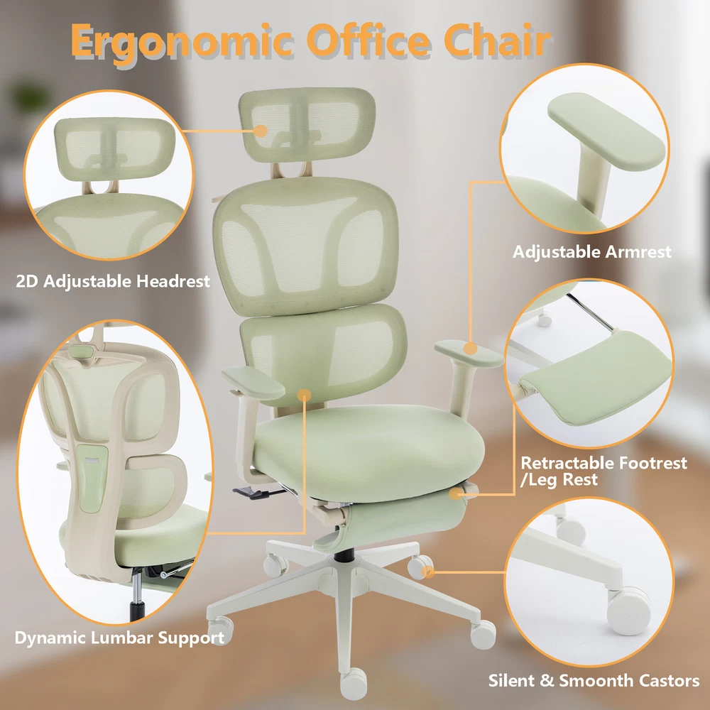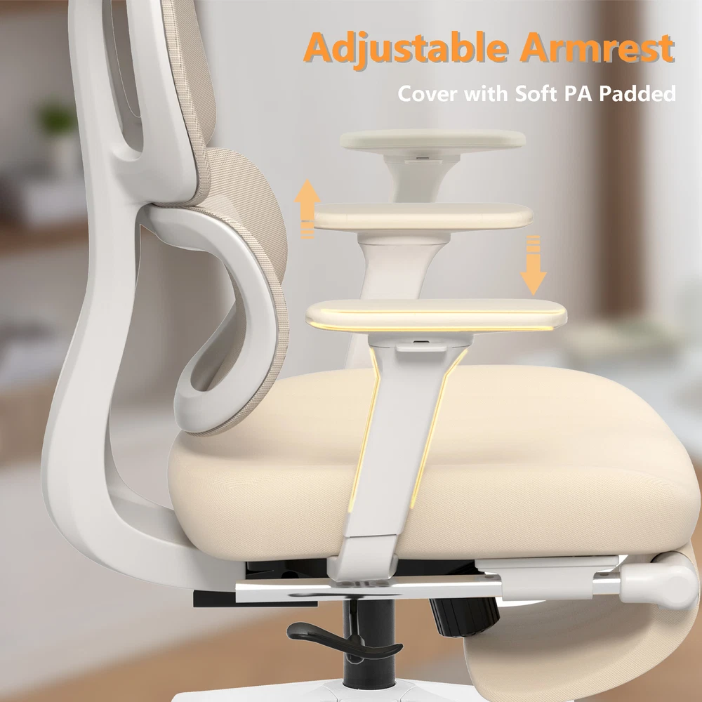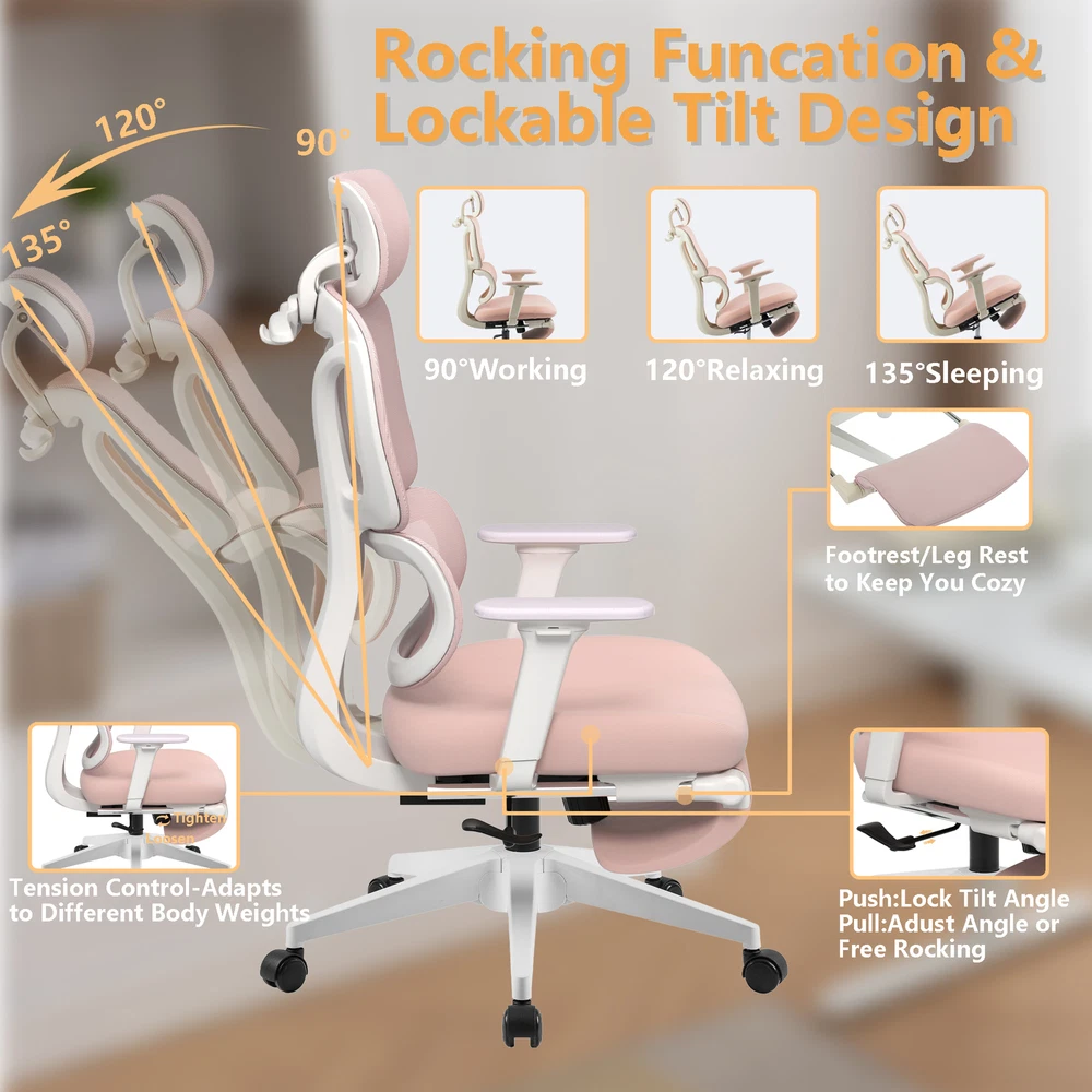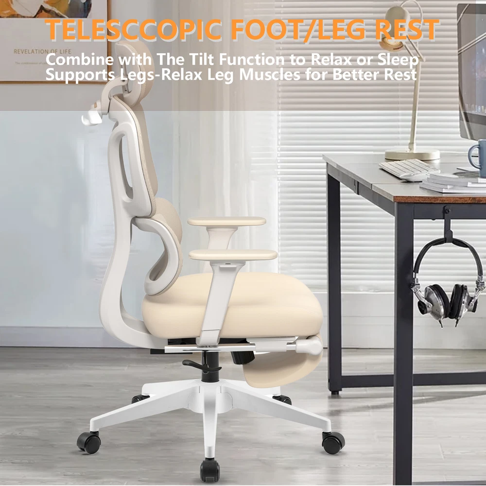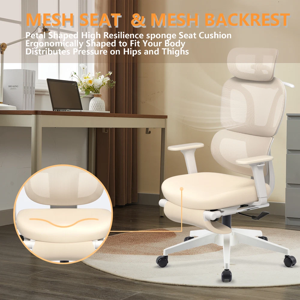 【 Customizable Comfort 】Featuring adjustable seat depth (20.8"-22"), height (20.1"-22.4"), and tilt functions to ensure a perfect fit for users between 5'1" and 6'2". 【 Enhanced Ergonomics 】 Dynamic lumbar support, 5-level adjustable back, a 3D adjustable headrest, nap footrest and tilt provide superior back and neck support for long hours. 【 3D Armrests 】Fully adjustable armrests (height, forward/back, and swivel) allow for precise positioning to reduce arm strain during extended use. 【 Breathable & Durable Design 】Choose between a mesh seat for cooling airflow or a cushioned foam seat for cradled support, with premium materials & class 4 gas lift built to last. 【 Optional Footrest 】Retractable footrest available for added relaxation—perfect for breaks or reclined seating, paired with a sleek modern design that suits any workspace. Details: Product Height: 43.7" - 52.4" Product Dimensions: 27.8" D× 27.8 " W× 52.4 "H Seat Depth: 20.8" - 22" Seat Width: 20.5" Adjustable Seat Height: 20.1" - 22.4" Weight: 38 lbs Weight Capacity: 400 lbs Features: 3D Headrest, 3D Armrests, Dynamic Height, Tilt Function, Adjustable Lumbar Support, Adjustable Seat Depth Lifting Mechanism: Gas Spring Seat Material: Mesh Frame Material: Nylon On Feb 10, 2025 at 00:38:50 PST, seller added the following information: