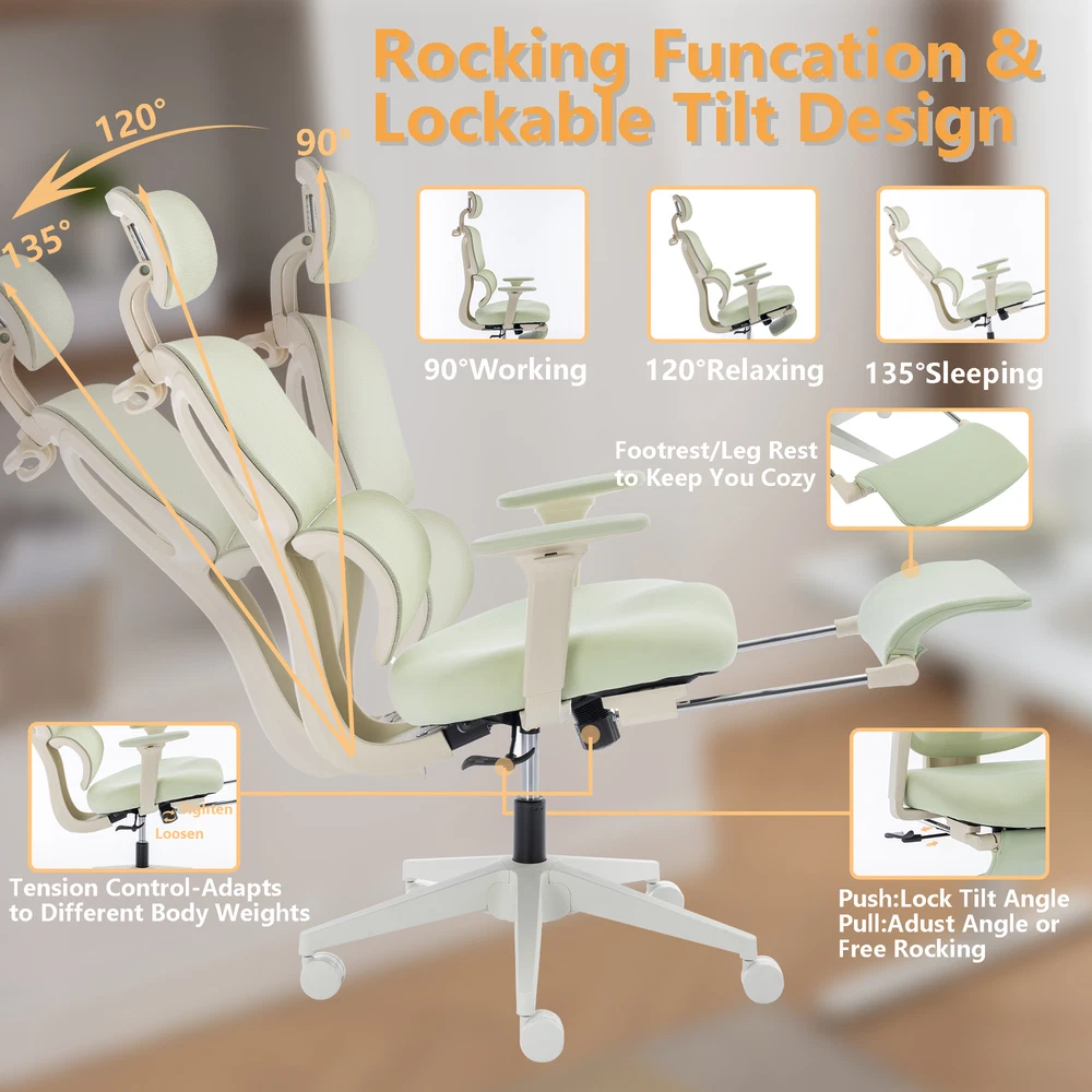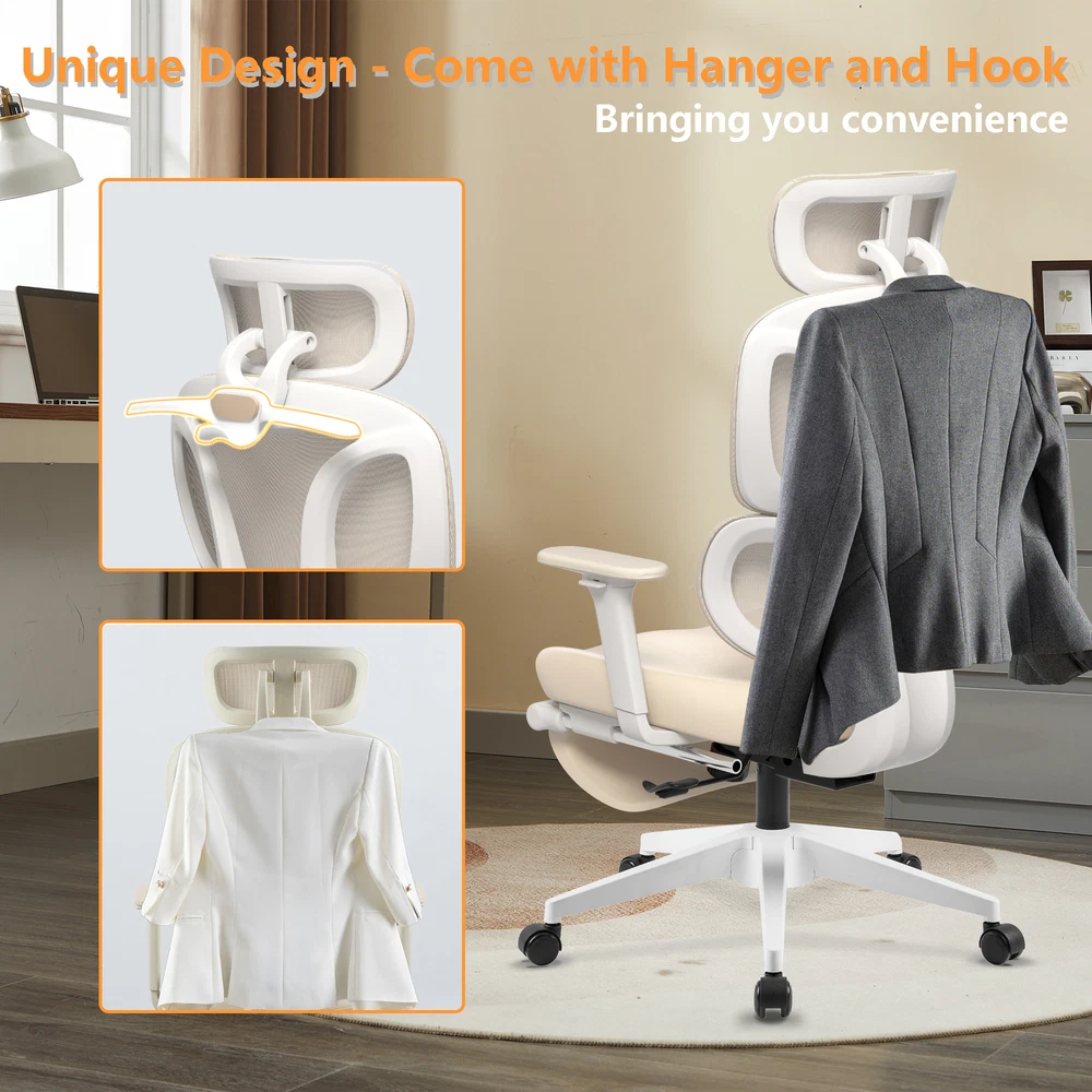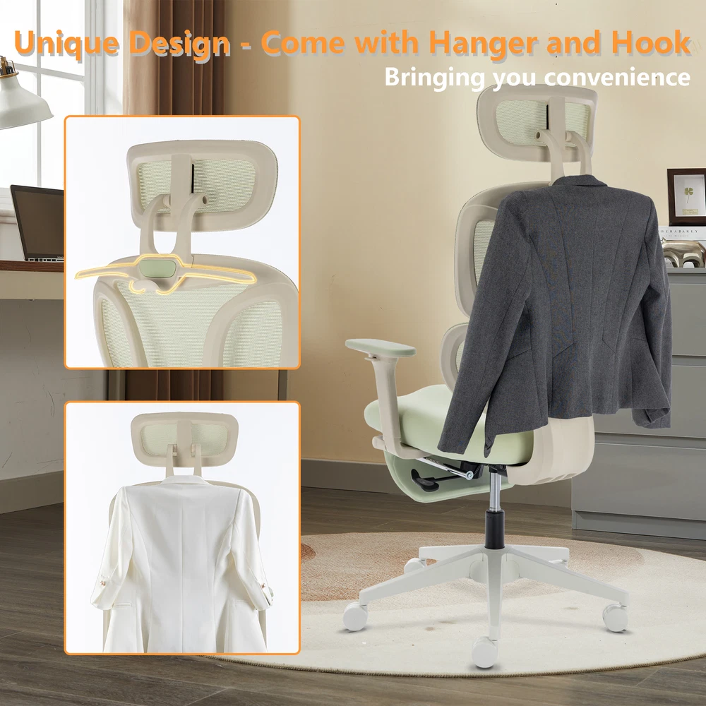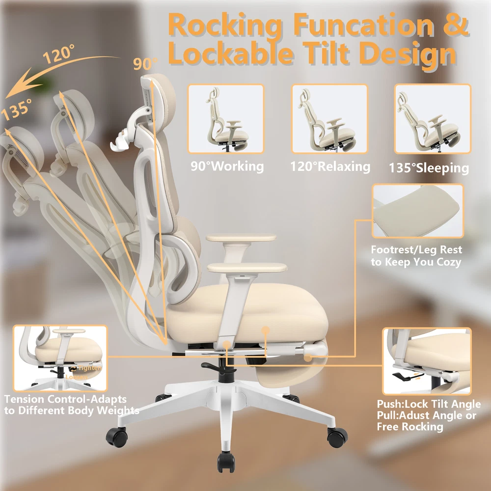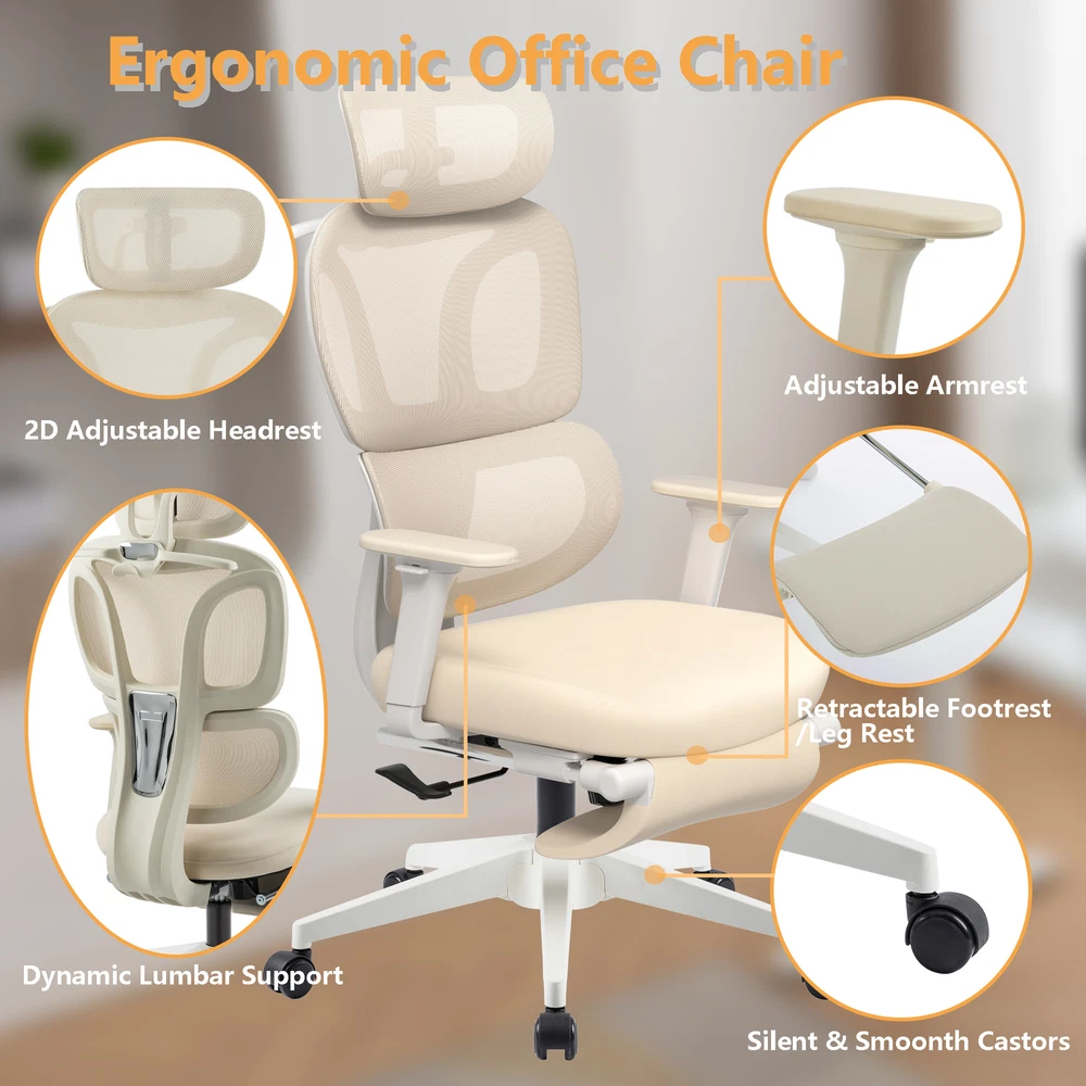 【 Customizable Comfort 】Featuring adjustable seat depth (20.8"-22"), height (20.1"-22.4"), and tilt functions to ensure a perfect fit for users between 5'1" and 6'2". 【 Enhanced Ergonomics 】 Dynamic lumbar support, 5-level adjustable back, a 3D adjustable headrest, nap footrest and tilt provide superior back and neck support for long hours. 【 3D Armrests 】Fully adjustable armrests (height, forward/back, and swivel) allow for precise positioning to reduce arm strain during extended use. 【 Breathable & Durable Design 】Choose between a mesh seat for cooling airflow or a cushioned foam seat for cradled support, with premium materials & class 4 gas lift built to last. 【 Optional Footrest 】Retractable footrest available for added relaxation—perfect for breaks or reclined seating, paired with a sleek modern design that suits any workspace. Details: Product Height: 43.7" - 52.4" Product Dimensions: 27.8" D× 27.8 " W× 52.4 "H Seat Depth: 20.8" - 22" Seat Width: 20.5" Adjustable Seat Height: 20.1" - 22.4" Weight: 38 lbs Weight Capacity: 400 lbs Features: 3D Headrest, 3D Armrests, Dynamic Height, Tilt Function, Adjustable Lumbar Support, Adjustable Seat Depth Lifting Mechanism: Gas Spring Seat Material: Mesh Frame Material: Nylon On Feb 10, 2025 at 00:38:50 PST, seller added the following information: