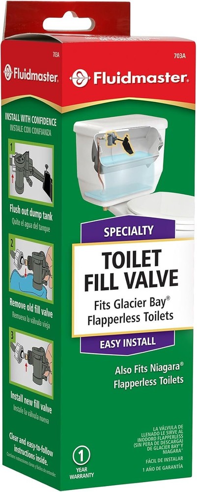 A direct replacement for Glacier Bay & Niagara Flapperless Toilets Easy-to-install, instructions included Increase your Glacier Bay / Niagara refill speed Restore & optimize your toilet to factory performance Replace old or inefficient fill valves with this high-quality replacement part A fast and effective DIY solution to common toilet fill problems Product Description Fluidmaster is the number 1 toilet parts brand in the world, selling more than 100 million toilet products annually and selling more toilet-tank replacement parts than any other manufacturer in the world. From the Manufacturer Fluidmaster is the #1 toilet repair brand in the world. Since 1957, we have been guiding our customers to the right toilet repair solutions. Fluidmaster is dedicated to making the installation of its products easy and simple with a complete line of toilet repair parts including: fill valves, single and dual flush valves, flappers, tank levers, toilet seals (bowl wax and wax-free), toilet repair kits, flush valve seals, connectors and more. Fluidmaster parts are found in more toilets than all other brands combined. Fluidmaster distributes to over 90 countries and is the trusted brand by toilet manufacturers and professionals worldwide.