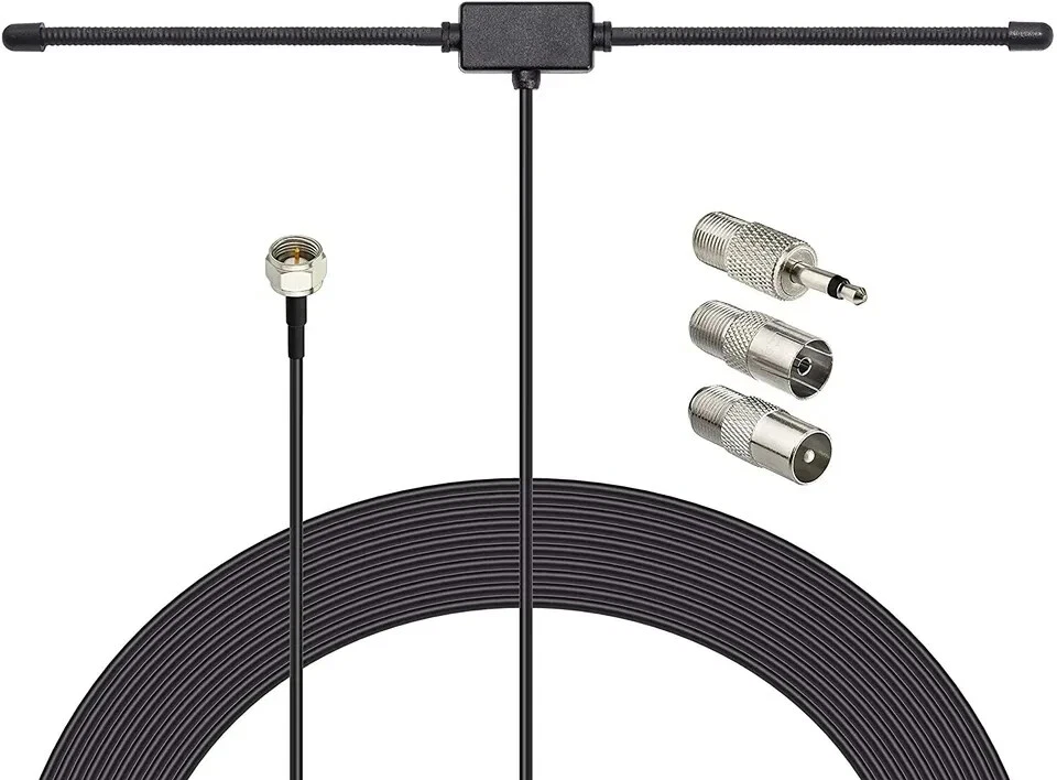 FM Radio Dipole Antenna for Stereo Receiver Indoor Pioneer Bose Yamaha Marantz products details Adhesive Mounting FM Radio Antenna 75 Ohm UNBAL FM Dipole Antenna with Universal Connector and Adapter,for Music System Indoor Radio Bluetooth Stereo Receiver AV Audio video Home Theater Receiver Tuner. Compatible with Yamaha, JVC, Sherwood, Pioneer, Panasonic, Onkyo, Sony, Bose Indoor Sound Radio Home Stereo Audio video Receiver, 75 ohm UNBAL. 10 feet / 3m Coaxial Extension Cable, Antenna Connector Interface: F Type Plug Connector; Included Connector Adapter: TV Female Socket Connector Adapter, 3.5mm Audio Plug Connector Adapter, TV Male Plug Connector Adapter; Easy to install; Adhesive Wall Mounting, Improves FM Radio Stereo Reception; Package List: 1 x Antenna, 3 x Connector Adapters;(As the Picture Shown)