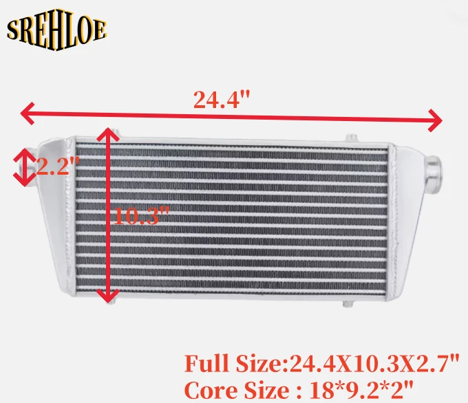 Specification: Part Name: Intercooler Material: Aluminum Inlet / outlet Size : 2.2" Core Size : 18*9.2*2" Full Size: 24.4*10.3*2.7" Quantity: 1 piece Warranty: 1 Year Condition: 100% Brand New Applaction: Universal (Please take correct measurements to make sure it will fit in the location) Package Includes: 1 x Universal Intercooler Shpping: Recomm endations to International Buyers: Import duties, taxes and charges are not included in the item price or shipping charges,they are responsible by buyers. All orders with its payment cleared will be shipped within 2 work days.please advise your phisical address and phone NO.. Shipping carriers will be different depends on special needs,if you have special request,please contact us. Tracking numbers will be updated on eBay as soon as they are created and processed All order will shipped out from our USA warehouse for USA buyer. Delivery time is 3-10 Business days. No shipping on weekends and holidays. Return: Please contact us before return your item,we will send you correct return address. All returns must be packed securely for shipping and the tracking number must be provided via your eBay return request or message. Any lost or da mage during shipping back are covered by buyer. Contact US: Please take photos immediately if you find the package or item damaged. The best way to contact us is by eBay messages. We always reply eBay messages that are sent to us with an inquiry, usually within 24 hours of receipt or sooner. Although we are trying our best , there could be small issues like wrong or defective item sent or damaged during transit or item not as described. Please do not hesitate to contact us and we will work with you for a reasonable solution.