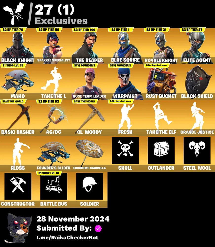 🎮FN Black Knight, The Reaper, Sparcle Specialist, Mako, Take the L, 42 Skins✅