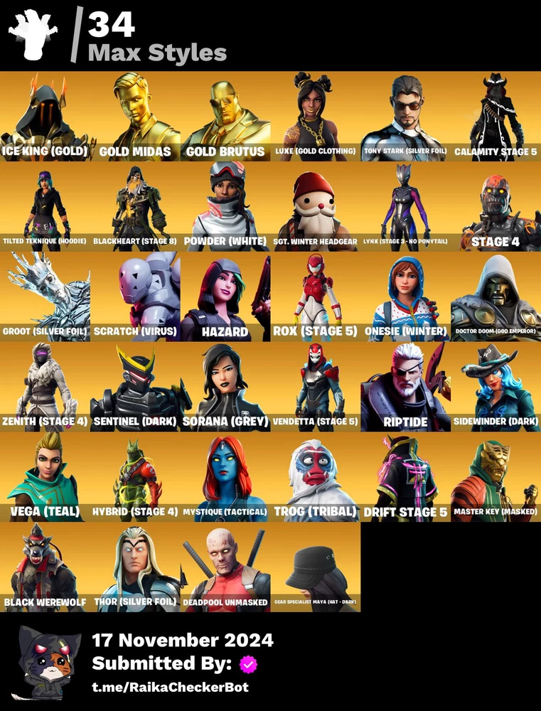 🎮FN Gold Midas,Drift, Point it out, Calamity, Tony, Founders Edition 125 Skins✅