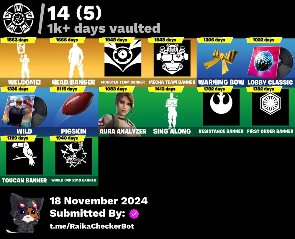 🎮FN Lara Croft, Midas,Spider-Gwen, Carnage.Clark, Rick, Naruto 179 Skins✅