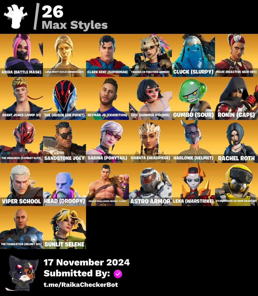 🎮FN Lara Croft, Neymar JR, Nezumi, Darth Vader, Rebith Raven, Son Goku 98 Skin✅