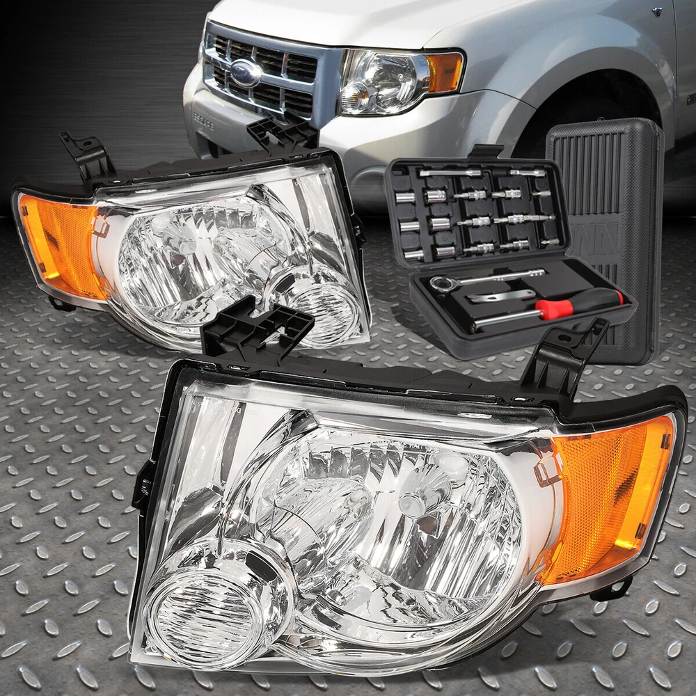Welcome to Speed Daddy Store Home About Us Feedback Add To Favorites New Arrivals Ending Soon Contact Us FOR 08-12 FORD ESCAPE CHROME HOUSING AMBER CORNER HEADLIGHT HEAD LAMPS+TOOL SET Product Description When it comes time to remove and replace or repair your headlights, first you need to remove them from your vehicle. Our specialized tool kit contains the most common tools required for removal and replacement to simplify the job. Specifics and Features : Headlights: Plug-n-Play Operation, Direct Bolt-on OE Fitment or Replacement for the Stock Unit Comes with a Complete Pair of Headlights (Driver and Passenger Side) Brings a Different Appearance to Your Vehicle That's Great for Show Use or to Replace Old and Worn Headlights Requires no Modification or Drilling Uses H13 High / Low Beam Bulbs Bulbs are not Included Headlight Installation Tool Kit: Brand New In Original Box, Never Been Used Exactly The Same As Picture! 8.5" X 4.25" X 2.25" Heavy Duty Blow Mold Case for Easy Transport & Storage Contains Most Common Tools Needed for Headlight Removal 20 Piece Tool Kit Chrome Vanadium Construction Metric Sized Sockets & Bits Chrome Polish Finish Rubberized Non Slip Grip Includes : 1 X Pair of Headlights (Left & Right) 1 X 1/4" Drive Ratchet 1 X 2" 1/4" Drive Extension 1 X 3 1/4" Drive Extension 1 X Bit Drive 6-Piece Sockets : 7mm, 8mm, 9mm, 10mm, 11mm, 12mm 6-Piece 6-Point Star Torx Sockets : T10, T15, T25, T30, T35 2-Piece Philips & Standard Screw Driver Bits Trim Removal Tool Bit extension Notes : Compatible with: 08-12 Ford Escape 100% Brand New Professional Installation is Highly Recommended Installation Instruction is NOT Included Shipping Payment Returns Terms & Conditions Feedback Contact Us DOMESTIC LOWER 48 US STATES: FREE SALES TAX: CA ONLY VERY IMPORTANT: Double check shipping address. We are not responsible for incorrect or undeliverable addresses. Please use Shipping & Payments tab on top of page for shipping details for your location. Shipping to PR, HI, AK and PO Box addresses will be charged the same as shipping to Canada. GU, VI, SAIPAN will be charged the same as international shipping rate. For Canada shipping please select the lowest price. We do not offer expedited shipping. US Territories such as GU, VI, SAIPAN will be charged the same as CANADA shipping rate. Transaction will be held until a full shipping amount received. Some of the packages cannot be delivered to a PO Box. Customer is responsible to ensure PO Box address given is deliverable by the shipping company. Package will be held until a valid physical address is provided. Customer assumes shipping charges incurred in shipping to undeliverable address. International buyers are responsible for all customs duties, taxes, and other applicable fees incurred by the country's customs/border regulations. Please contact customs for more information. We ship 98% of all orders the same or next business day after payment received/cleared. Please understand that once orders are shipped, we cannot control the transit times thereafter. Most orders will ship via USPS First Class/Priority Mail or FedEx/UPS or the best suitable carrier for the specific size of the product. We are not responsible for any changes to address after item has been shipped. Item will be shipped out within 24 hours after payment cleared, except for weekends and holidays. PayPal e-check takes 3-7 business days to be processed. We will not ship until an e-check has been cleared. 30 Days Free Returns, please notify us within 30 days after you've received your order. Please email us or call us to obtain a RMA (Return Merchandise Authorization) number from us, and have the RMA number written on the return package. Items to be returned must be in resalable condition. All returns are for refund ONLY. No exchange accepted. For emissions related items, please check with your local jurisdiction for emission specific requirements before purchasing. All items do not come with installation instruction unless otherwise specified. If item is questionable, please consult your local professional/mechanic before making purchase. Shipping DOMESTIC LOWER 48 US STATES: FREE SALES TAX: CA ONLY VERY IMPORTANT: Double check shipping address. We are not responsible for incorrect or undeliverable addresses. Please use Shipping & Payments tab on top of page for shipping details for your location. Shipping to PR, HI, AK and PO Box addresses will be charged the same as shipping to Canada. GU, VI, SAIPAN will be charged the same as international shipping rate. For Canada shipping please select the lowest price. We do not offer expedited shipping. US Territories such as GU, VI, SAIPAN will be charged the same as CANADA shipping rate. Transaction will be held until a full shipping amount received. Some of the packages cannot be delivered to a PO Box. Customer is responsible to ensure PO Box address given is deliverable by the shipping company. Package will be held until a valid physical address is provided. Customer assumes shipping charges incurred in shipping to undeliverable address. International buyers are responsible for all customs duties, taxes, and other applicable fees incurred by the country's customs/border regulations. Please contact customs for more information. We ship 98% of all orders the same or next business day after payment received/cleared. Please understand that once orders are shipped, we cannot control the transit times thereafter. Most orders will ship via USPS First Class/Priority Mail or FedEx/UPS or the best suitable carrier for the specific size of the product. We are not responsible for any changes to address after item has been shipped. Payment Item will be shipped out within 24 hours after payment cleared, except for weekends and holidays. PayPal e-check takes 3-7 business days to be processed. We will not ship until an e-check has been cleared. Returns 30 Days money back, please notify us within 30 days after you've received your purchased item. All 