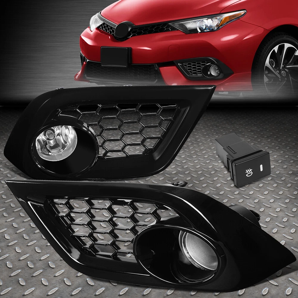 FOR 16-18 SCION TOYOTA COROLLA IM CLEAR LENS FOG LIGHT LAMP W/BEZEL COVER+SWITCH
