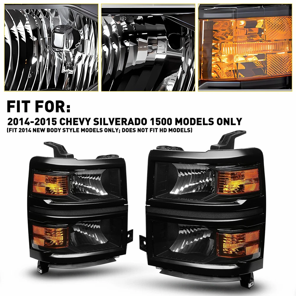 Fit for: For 2014-2015 Chevy Silverado 1500 Models Only (Fit For 2014 New Body Style Models Only; Does NOT Fit For HD Models) Specifications: OE number: 20933724, 20933725, 20933722, 20933723, 23172782, 23172783 GM2502389, GM2503389, GM2502395, GM2503395, GM2502410 Material: ABS+PC (ABS Plastic Housing/Polycarbonate lens) Appearance color: 1.Housing Color: Black 2.Lens Color:Clear 3.Reflector Color:Amber Note: Projector ×(Not include) DRL ×( Not Include) Bulb × (Not include) Features: FOR 2014-15 CHEVY SILVERADO 1500 HOUSING AMBER CORNER HEADLIGHT HEAD LAMPS Fit for: For 2014-2015 Chevy Silverado 1500 Models Only (Fit For 2014 New Body Style Models Only; Does NOT Fit For HD Models) Specifications: OE number: 20933724, 20933725, 20933722, 20933723, 23172782, 23172783 GM2502389, GM2503389, GM2502395, GM2503395, GM2502410 Material: ABS+PC (ABS Plastic Housing/Polycarbonate lens) Appearance color: 1.Housing Color: Black 2.Lens Color:Clear 3.Reflector Color:Amber Note: Projector ×(Not include) DRL ×( Not Include) Bulb × (Not include) Features: *Easy to install: Direct replacement, drilling and cutting are not required. *Superior quality: Made of ABS and PC materials with toughness and heat resistance functions to ensure its long service life and durability. *Angle adjustment: Equipped with a headlamp Angle adjustment knob, you can adjust the best Angle of view through the knob. *Suggestion: 1.Please confirm the OE number before purchasing! 2.Professional installation is required! Packaging include: Headlights*2(Left+Right) ABOUT US FOR 2014-15 CHEVY SILVERADO 1500 HOUSING AMBER CORNER HEADLIGHT HEAD LAMPS Fit for: For 2014-2015 Chevy Silverado 1500 Models Only (Fit For 2014 New Body Style Models Only; Does NOT Fit For HD Models) Specifications: OE number: 20933724, 20933725, 20933722, 20933723, 23172782, 23172783 GM2502389, GM2503389, GM2502395, GM2503395, GM2502410 Material: ABS+PC (ABS Plastic Housing/Polycarbonate lens) Appearance color: 1.Housing Color: Black 2.Lens Color:Clear 3.Reflector Color:Amber Note: Projector ×(Not include) DRL ×( Not Include) Bulb × (Not include) Features: *Easy to install: Direct replacement, drilling and cutting are not required. *Superior quality: Made of ABS and PC materials with toughness and heat resistance functions to ensure its long service life and durability. *Angle adjustment: Equipped with a headlamp Angle adjustment knob, you can adjust the best Angle of view through the knob. *Suggestion: 1.Please confirm the OE number before purchasing! 2.Professional installation is required! Packaging include: Headlights*2(Left+Right) FAQ Shipping Returns Contact Us Payment Why swith to LED? LEDs not only give your vehicle a clean, modern look but, with proper use, will outlast any halogen bulb and HID bulb! Low energy draw, high lumen output, and instant on/off LED technology out shines stock bulbs in every way. Which bulbs are used in my vehicle? Check Sylvania automotive lamp replacemnt guide , you can select the year, make, and model of your vehicle, then select the application you want to replace or upgrade from stock. What does CAN Bus mean? CAN Bus means Controller Area Network Bus. This system monitors your vehicle and reports operating conditions. CAN Bus systems are commonly found in European vehicles such as BMW, Audi, Mercedes, Volkswagen, Porsche, and in many American vehicles. While most late model American vehicles have CAN Bus systems, it is always good to check with your vehicle dealer to see which system your vehicle has before purchasing electrical products. When do you need Warning Canceller? Some vehicles with cmplex internal computers(such as Audi,BMW,Jaguar,Mercedes,etc.) might report on-dash errors or flickering on the headlights. The warning canceller fixes the dashboard warning and flickering effect. Bulb Out Dashboard Error: On some vehicles, the dashboard will report as if you have a headlight bulb missing or burnt. It does not affect the headlights functioning, but the light on-dash will be on. The warning canceller fixes the issue. Flickering Issue: This happens when your vehicle does not recognize the new headlights installed. When turning the headlights on, the vehicle's computer does not understand the signal back from the headlights hence thinking they are still off. This triggers the headlight flickering effect. The warning canceller solves this issue. LED Advantages: Very low and efficient energy consumption than halogen bulbs & HID Bulbs Compared with HID bulbs, LED bulbs Light up instantly, no warm up period Low voltage protection, high precision constant current driver chip Longer lifespan than HID and halogen bulbs Light can be controlled easily in color and intensity Easy to install a LED headlight conversion kit (1) We will ship your item(s) within 24 hours. (2) We ship this item to US only via USPS first class mail. It usually takes 3-6 working days to deliver. How Long Will It Take to Receive My Refund? If you have emailed us for a refund ,once we have approved it ,after 60 days your money will be refunded. The estimated time for the refund to appear in your account is based on the payment method you use. Paypal is the only supported in NIGHTEYE Store. Please notify us within 30 days after you've received your purchased item. All return requests must be submitted through your eBay account. NOTE: Buyers pay for the return shipping fee. Items to be returned must be in resalable condition, for example: You do not satisfy the item quality Item do not fit your vehicle perfect Item can not reach your expectation The item arrived be broken You do not receive the item Parcel Lost Receive the wrong item If you have problems with the above issue, please Contact Us immediately ! [Our office hours are MONDAY - Saturday 9:00PM - 6:00PM PST, but we will response you once we get your message .There will be some delay on respons if you send message or E-Mail on Sundy.] (1).Negative feedback will not help resolve any problems 