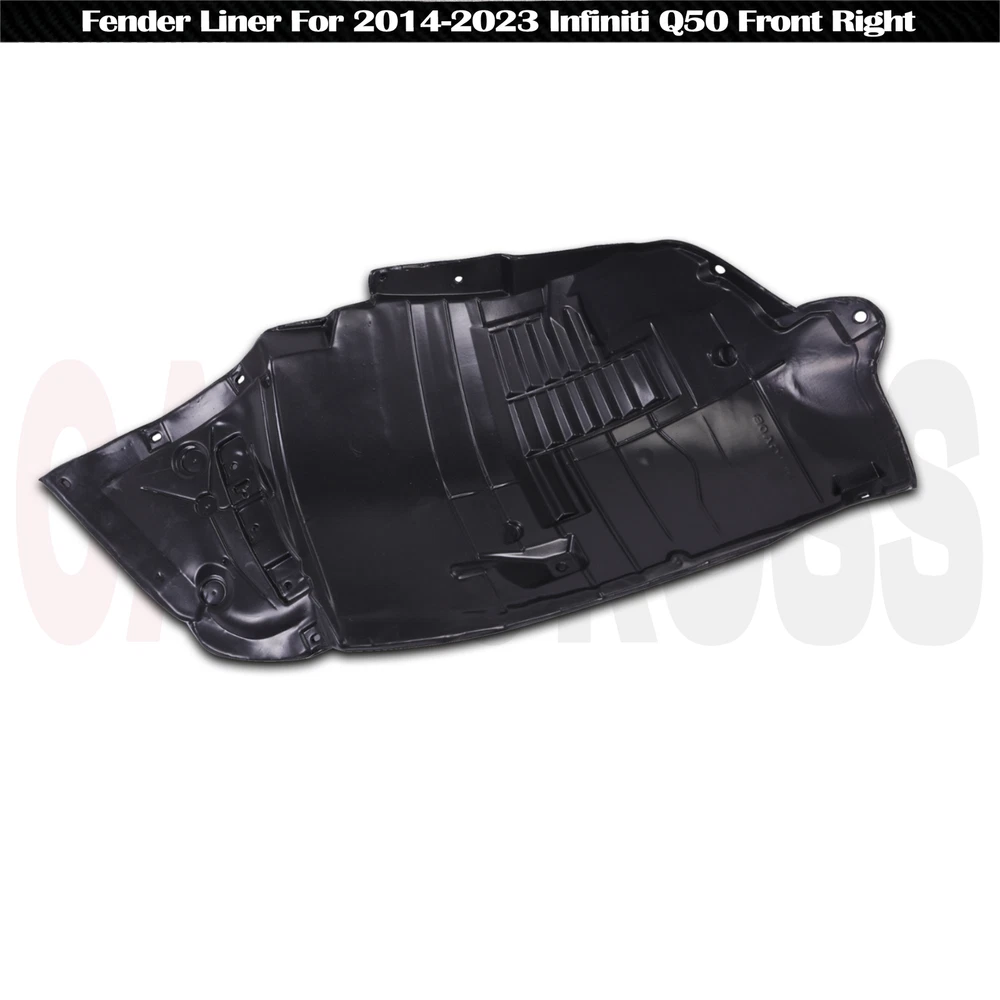 Fender Liners Front Passenger Right Side Hand 638404GA0A for INFINITI Q50 2014-2023 Description REPLACEMENT FENDER LINER Replacement fender liners perform just like the original to protect your engine compartment from dirt, mud, water, and other contaminants. Each Replacement fender liner is made to factory specifications, allowing you to easily restore your vehicle to its original condition. Features & Benefits: Easy to Install Designed as a direct replacement for your original fender liner. Keeps factory ducting for brakes or fluid coolers. Made to factory specifications for a hassle-free installation, guaranteed. Premium Protection Durable, high-quality construction defends against dirt, mud, water, and other contaminants. Ready to restore your vehicle to like-new condition. Benchmark Design and Manufacturing Processes Replacement brand fender liners are the result of extensive research and development, ensuring a state-of-the-art design and flawless performance. Lean manufacturing process keeps costs down and quality high. Notes Location : Front, Right Side, Rear Section Anticipated Ship Out Time Same day - 1 business day Quantity Sold Sold individually Replaces OE Number 638404GA0A Replaces Partslink Number IN1249131 Interchange Part Number 638404GA0A, IN1249131 Prop 65 Warning WARNING: This product can expose you to chemical which is known to the State of California to cause cancer and birth defects or other reproductive harm. For more information go to www.P65Warnings.ca.gov. Insulation Foam Without Insulation Foam Location Right, Front, Rear Compatible with the following vehicles: Infiniti 2020 Q50 Edition 30 2021 Q50 Essential Tech 2015-2018 Q50 Hybrid 2018 Q50 Hybrid Luxe 2014-2015 Q50 Hybrid Sport 2014-2018 Q50 Premium 2016-2023 Q50 Red Sport 400 2019-2021, 2023 Q50 Signature Edition 2014-2020 Q50 Sport 2021-2022 Q50 Sport Tech 2014-2017 Q50 (submodel: Base, Hybrid Premium) 2018-2023 Q50 (submodel: Luxe, Pure) 2021-2023 Q50 (submodel: Red Sport I-Line, Red Sport I-Line ProACTIVE, Sensory) On Jan 22, 2025 at 06:42:19 PST, seller added the following information: