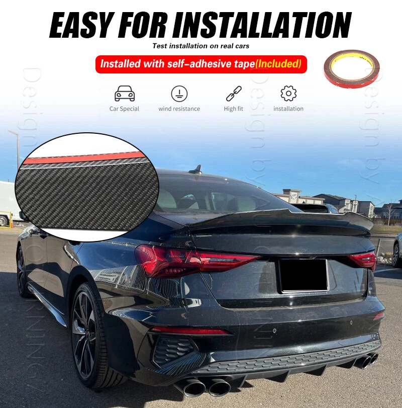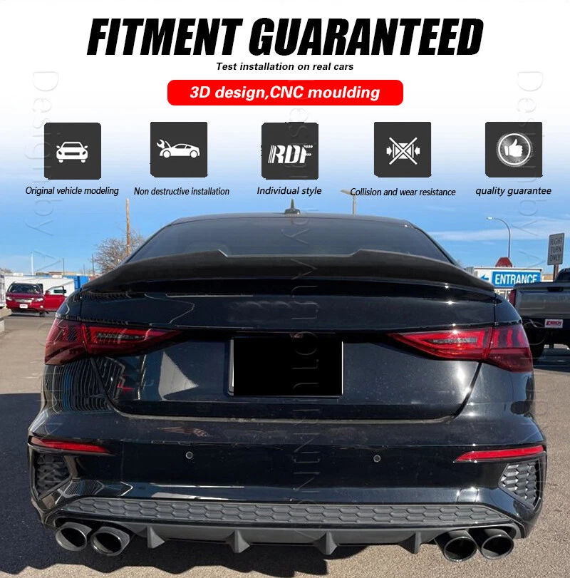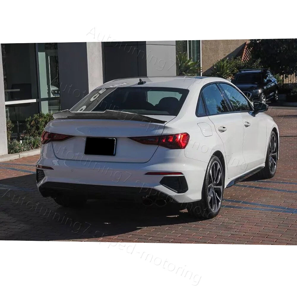 Fitment: Fit For Audi A3 S Line S3 8Y RS3 Sedan 4-Door 2021-2024 Specifications: Product Name: Rear Spoiler Material: Carbon Fiber Package Size: 128*28*11 cm Package Weight: 1.9kg Features: Made of High Quality Lightweight Carbon Fiber. Latest Design GT Wing Spoiler Completed Kit, Improve Handling And Make Tail More Stable in High Speed. Water Transfer Carbon Fiber for Highest Durability and Appearances. Adjustable Angles for Customizable Usages and Efficiencies, Enhances Aerodynamic. Reduces Drag, Increases Fuel Efficiency, Reinforces Downforce, Traction and Stability. Double-sided adhesive paste, Easy to Install. Package included: 1 x Spoiler with self-adhesive glue tape Carbon Fiber Spoiler The Rear Trunk Spoiler is one of the simplest mods you can do to the exterior of your car that will give your car that completely different look. Not only are spoilers meant for great looks, they also help with the aero dynamics of the car by lowering drag, or helping to put more downforce on the car making sure that the wheels stay grounded for maximum traction. Fitment: Fit For Audi A3 S Line S3 8Y RS3 Sedan 4-Door 2021-2024 Specifications: Product Name: Rear Spoiler Material: Carbon Fiber Package Size: 128*28*11 cm Package Weight: 1.9 kg Features: Made of High Quality Lightweight Carbon Fiber. Latest Design GT Wing Spoiler Completed Kit, Improve Handling And Make Tail More Stable in High Speed. Water Transfer Carbon Fiber for Highest Durability and Appearances. Adjustable Angles for Customizable Usages and Efficiencies, Enhances Aerodynamic. Reduces Drag, Increases Fuel Efficiency, Reinforces Downforce, Traction and Stability. Double-sided adhesive paste, Easy to Install. Package included: 1 x Spoiler with self-adhesive glue tape Delivery details Payment and TAX Warranty Policy Return Policy Contact us Delivery details NOTE: The shipping fee is only for the mainland of each country, it does not include the overseas territories, such as Virgin Islands (U.S.) , Puerto Rico, Hawaii , French Reunion Island, etc. But on ebay, when buyers from Puerto Rico and overseas territories , the shipping fee is equal to United States, it is NOT correct,. please contact us for correct shipping fee, or we will cancel the order. Sorry for the inconvenience, and thanks for your cooperation. 1. If you want to upgrade the shipping, please contact us before making payment, we will revise the shipping fee. 2. We will ship according to your Ebay address. Please make sure it is correct and include phone number for delivery. If you want to know the exact shipping time , please contact us . Payment and TAX 1.We accept Multiple Payment Methods Available: Credit Card, Debit Card, Gift Card, Apple Pay, Goggle Pay, PayPal and PayPal Cred. 2.Please leave note for your special request (e.g. Colors or Size) in ebay note when you pay the order. 3.Your must complete the payment within 7 days or Ebay will automatically open unpaid item case For US Buyer:The invoice value of each item is less than 800USD ,so you no need to pay any tariff . NON-US Buyer Note: Most countries are tax free based on our invoices, if tax is required, which will be buyer's responsibility. Warranty Policy We Warranty Our Product Within the Limited Warranty Policy Specified on Ebay. Please Email us if ou have any question regarding the warranty policy on a specific item. Most of the items are Aftermarket Parts and they are intended for off-road usage only, therefore no installation instruction will be included, Professional installation are Highly Recommended. We are not responsible for any damages to the item or the vehicle that occur during the installation of the item.Also, Please Make Sure Proper Installation is Performed as we are not responsible for item being missing or flew off after the installation. if you don't think the item can stay on the car properly, please do not attempt to drive the car with it and please check with professional shops/mechanics or contact us for assistance. Return Policy We Accept Returns Within the Return Period On Ebay. Return Authorization/Return Approval is Required For Every Return. So If you Wish to Make a Return On Your Purchase. Please Contact us Before You Send The item back For any damages occured to the item upon arrival, Please notify us within 5 days of the delivery so we can take proper action to fix the issue. So Please Kindly inspect and check the item condition upon arrival.For Any other Return Inquries, You can contact us within the return period to obtain return authorization/return approval. In case of return, the merchandise needs to be returned in original condition with origi- nal packaging in order to be eligible for an exchange or a refund. Items must be not opened in their original package. Any mark of installation, mounting, cutting, scratch or using will not be allowed. Contact us 1.We are trying our best to explain all details of the products here! If you have any question, please feel free to contact us by Ebay message, and We will get back to you within 24-48 hours. 2.Customer satisfaction is our NO.1 priority. If you are not happy with the item that you purchase, please contact us first. We will try our best to solve the problem with you.Please leave us a positive feedback if you receive the item.Please do not leave negative or neutral feedback without any contact.If you haven't received item in 30 days, please contact us and we will arrange refund.We appreciate your business.Happy Bidding & Have a nice day! 3.Working hours: From 8 a.m. to 6 p.m. from Monday to Friday. From 8 a.m. to 12 a.m. on Saturday morning Holiday/Rest time: Saturday afternoon and Sunday