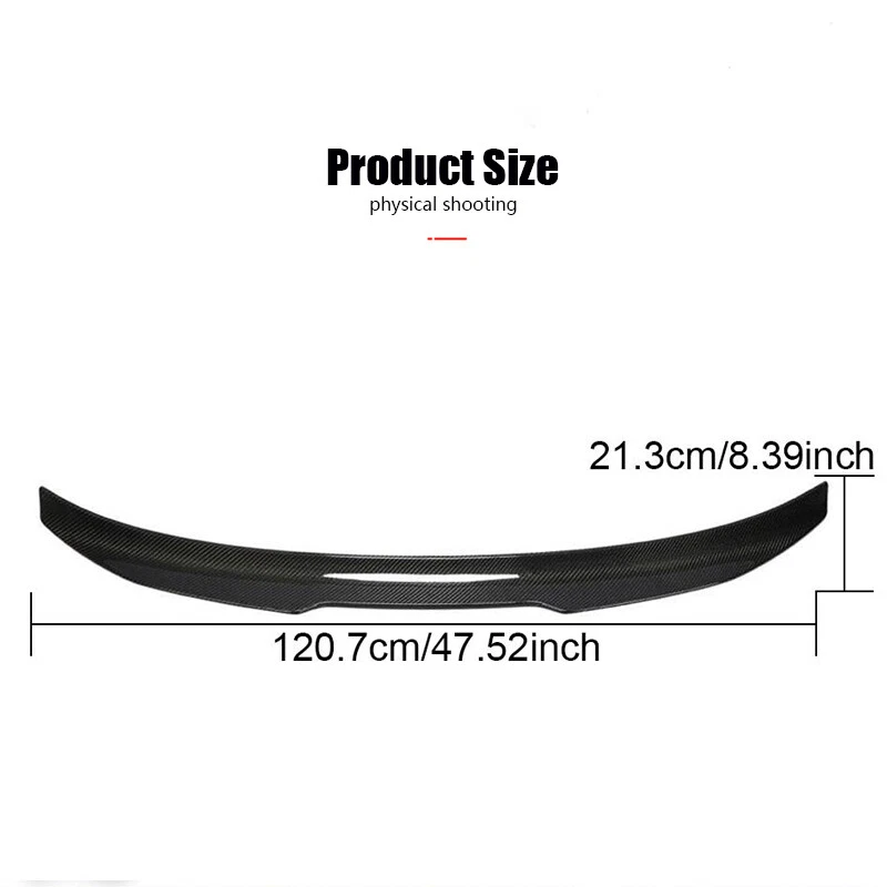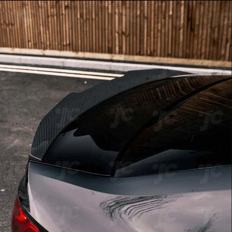 Finish: High polished 3*3 twill carbon fiber Brand: AUTO-PARTS UPC: 3569807414894 Interchange Part Number: Bodykit-Body-Kit-Tail-Boot-Lid, Added-On-Rear-Trunk-Spoiler-Wing-Lip,  Roof-Sport-Air-Dam-Chin-Spoiler-Deck Manufacturer Part Number: 3569807414894 Primary Color: Black Carbon Fiber Manufacturer Warranty: 1 Year Material: High quality Carbon Fiber Surface Finish: Smooth UV-Protected Clear Coating gtin13: 3569807414894 Country/Region of Manufacture: China Features: 3*3 Twill Carbon Weave Colour: Gloss Black Color: Gloss Black Placement on Vehicle: Rear, Upper Attachment Type: Adhesive Mounting Hardware Included: Yes Type: Rear trunk spoiler
