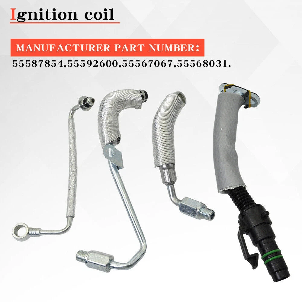 For Chevy Cruze Buick GM 1.4L Turbo Charger Coolant Return Hose Line 55567067 Features: Long life cycle: high hardness and strength, guaranteed quality and rigorously tested Energy-saving and economic: reduce fuel consumption and improve efficiency Compatibility: Please make sure the interchange part number matches the part you are replacing. Please check our photos and make sure the part shown looks identical to your stock one. OEM Number: 55580423, 55592600, 55580424, 55565395, 55587854, 55567067, 55568031, 25198546, 55569839, 25196807 Fit for: For 2013-2019 Buick Encore 1.4L L4 For 2011-2019 Chevy Cruze 1.4L L4 For 2012-2019 Chevy Sonic 1.4L L4 For 2013-2019 Chevy Trax 1.4L L4 For 2016 Chevy Cruze Limited 1.4L L4 Package include: 1* Turbo Oil Feed Pipe 1* Turbo Oil Return Drain Pipe 1* 8.5" Turbo Charger Coolant Return Hose Line 1* Turbo Charger Cooling Feed Line Pipe Professional Installation Recommended(No Instruction Included)