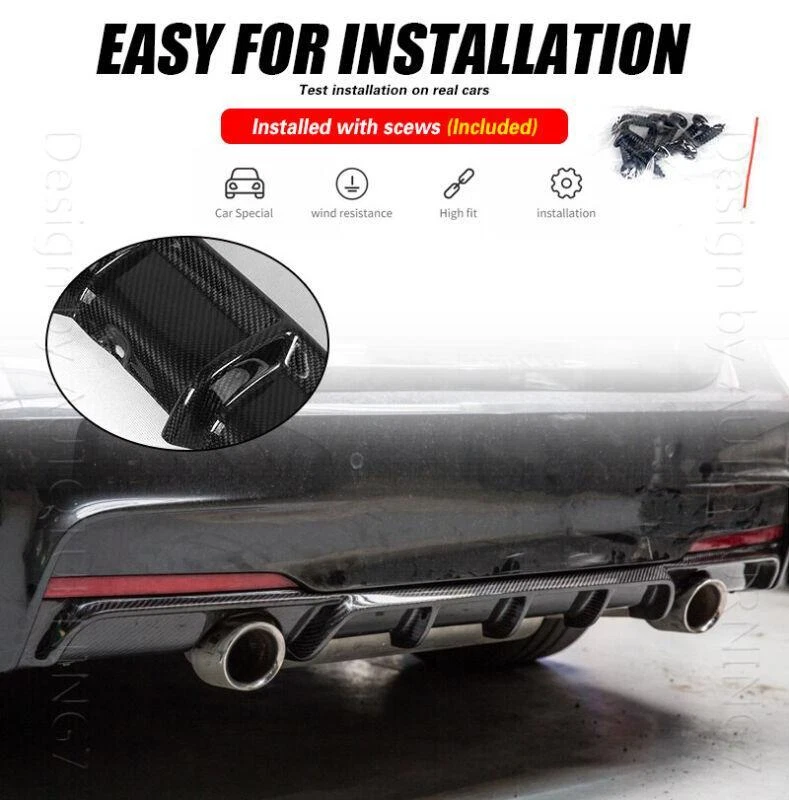 Manufacturer Warranty: 1 Year Color: Gloss Black Country/Region of Manufacture: China Finish: High polished 3*3 twill carbon fiber gtin13: 3569806987290 Colour: Black Placement on Vehicle: Rear, Lower Material: High Quality Carbon Fiber UPC: 3569806987290 Attachment Type: Screw-On Attachment Method: Screw-On Surface Finish: Smooth UV-Protected Clear Coating Brand: Autoturning7 Features: 3*3 Twill Carbon Weave Type: Rear Bumper Diffuser Primary Color: Black Carbon Fiber Number of Pieces: 1 Mounting Hardware Included: Yes Manufacturer Part Number: Does not apply Interchange Part Number: Air-Dam-Chin-Diffuser-Bumper-Splitter-Add-On, Valance, Rear Lip Spoiler, Lower Protector Body Kit, Canards Apron Fin Bottom-Line Warranty: Yes