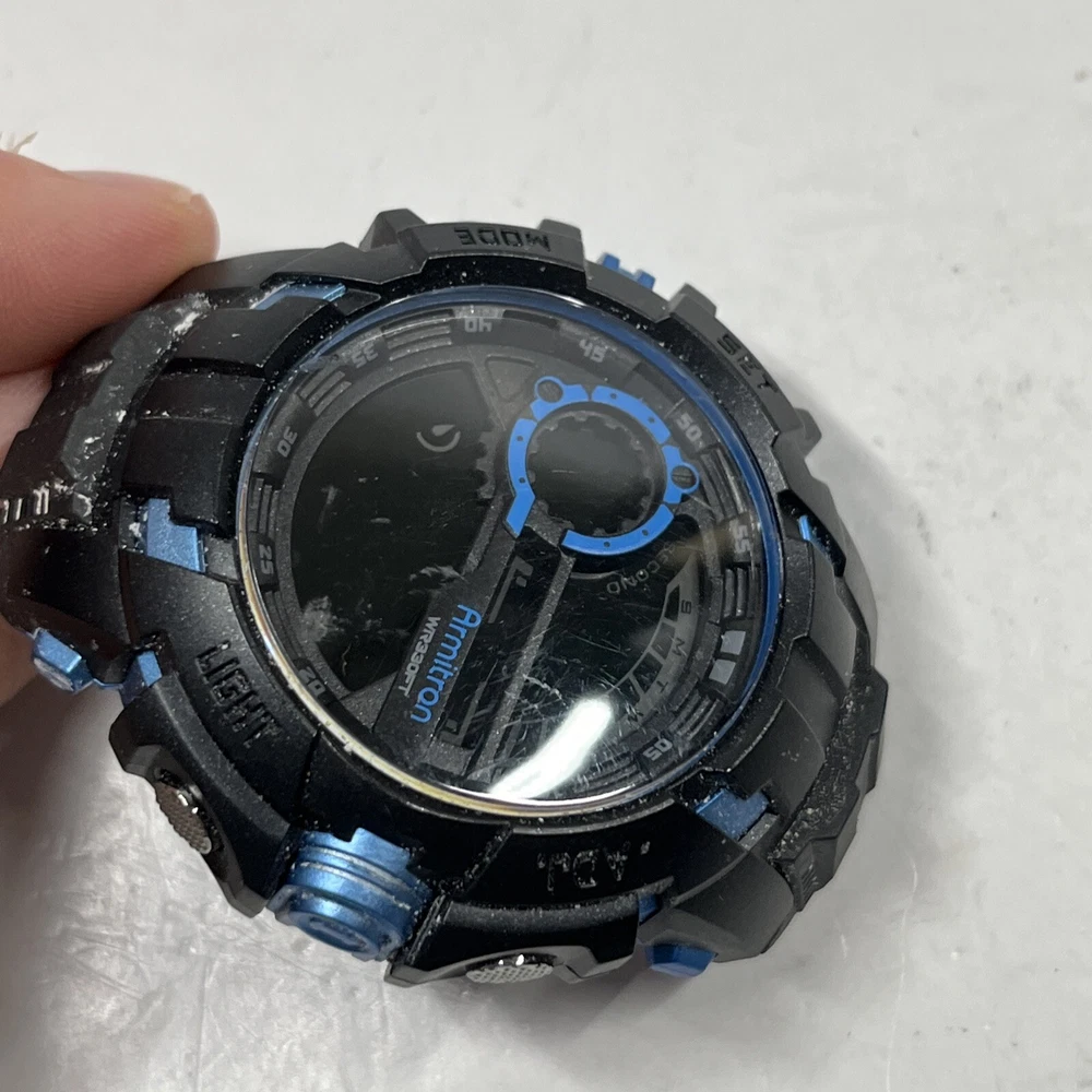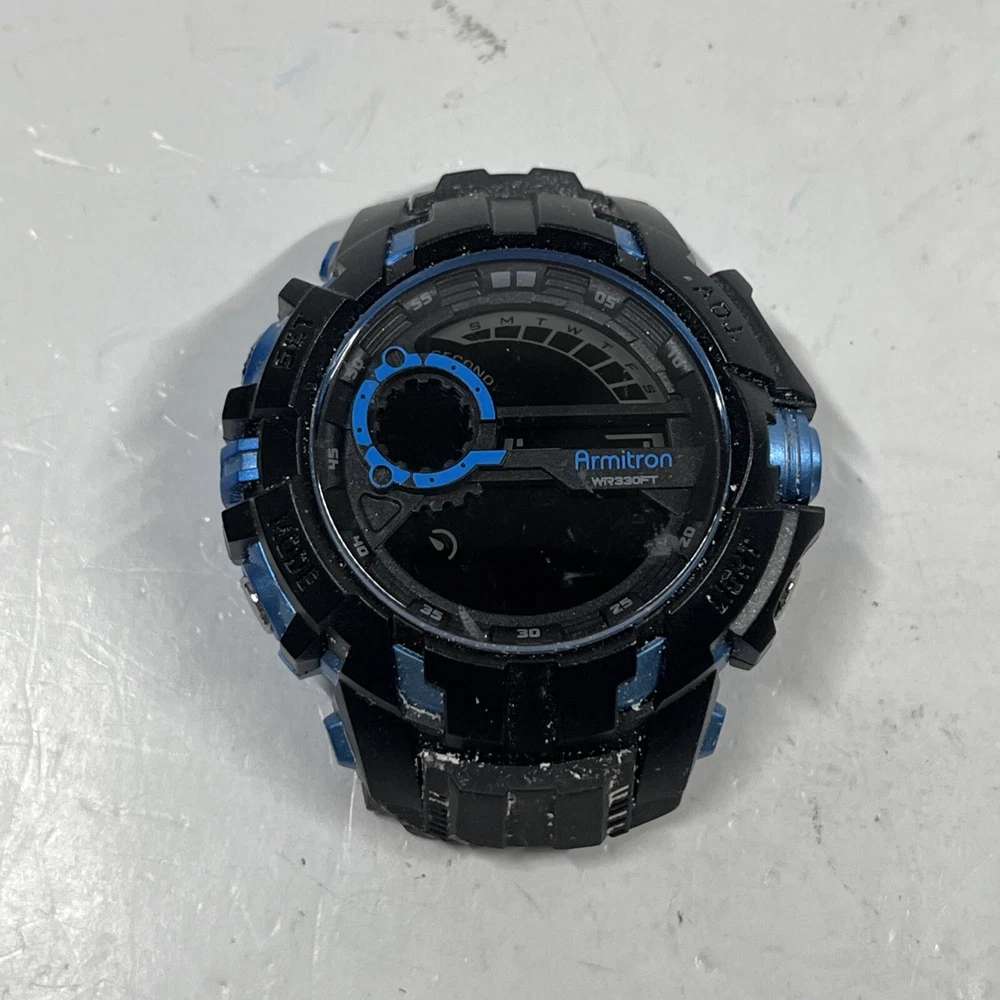 (FOR PARTS) Armitron Pro Sport 40/8335 Mens Digital WR 330 FT Blue Black Watch Watch is previously used and broken, needs a battery. Face only, the bands were cut off for some reason and are still attached. See all photos. You will receive this exact item pictured. It is a parts only or project. Thank you for viewing! We appreciate your business from the bottom of our hearts. We pack and ship all items same or next business day. We ship with USPS Ground Advantage. Always free shipping for all items across our entire store. All of our listings and descriptions are made in the best faith possible to accuracy and honesty of what we are offering. We inspect EVERY SINGLE ITEM to the best of our knowledge and ability before making it available for sale. Why shop with us? We are in the business of your satisfaction here at New Era Deals. You do not need to look any further when it comes to friendly, helpful customer service. Do not hesitate to ask us any questions. If by chance any issue arises with an item, we guarantee we will help find a solution. 30 day returns are accepted for all items available in our store. At the end of the day, we put our customers happiness above all. Please note that while we do offer returns on every item in our store, we have a 0 tolerance policy for fraudulent and unfaithful returns. If you are found to be stealing or abusing our return policy (i.e. returning an empty box or different item from what was purchased) we will 100% reach out to eBay and the local authorities. PLEASE use returns in an honest manner. Our story: We are a small group of eBay sellers with over 20 total years of experience selling on eBay. We collaborated in January 2024 to create project New Era Deals! Selling here on eBay is our pride and passion and lets us express our entrepreneur goals. We are very pleased to bring to our valued customers quality products across endless categories. We appreciate every single one of our past, present, and future customers very deeply!
