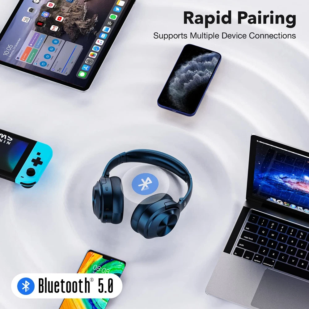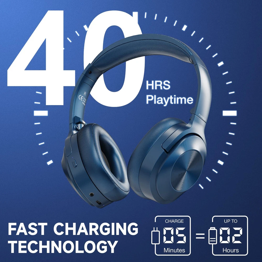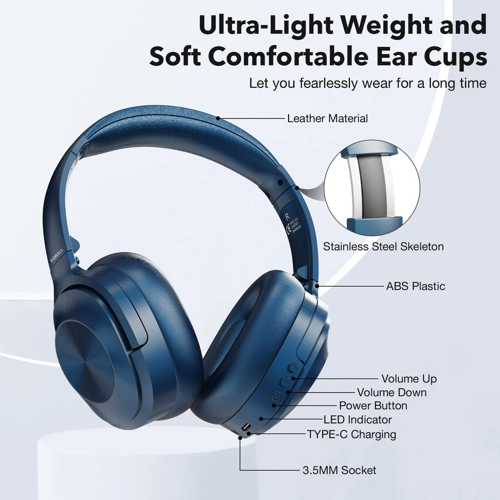 【Active Noise Cancelling Headphones】 Over ear noise cancelling headphones just press the ANC button,it will offer a pure immersive world for you whether in wired or bluetooth mode. Professionally isolate 90% of surrounding noise from aircraft,subways,cars and crowds. (Note:It's NOT 100% noise cancellation. Human talking CAN NOT be elimated and ANC is less effective in quiet environments) 【Premium Sound Quality】 Enjoy full-bodied sound with excellent clarity, as our wireless noise cancelling headphones reproduce treble up to 20kHz, elevating your listening experience whether you're working out or enjoying your favorite tunes. 【Long-Lasting Battery Life】 Our noise cancelling headphones stay connected with up to 40 hours of music playback time in ANC mode, ensuring non-stop entertainment throughout your day and night. 【Superior Call Quality】 Thanks to the combined built-in microphone with advanced audio signal processing technology.The active noise cancelling headphones deliver a clearer voice quality for all your phone conversations. 【Comfortable & Universal】 Wireless bluetooth headphones feature an adjustable headband,our over-ear headphones are suitable for all people. FORALL bluetooth headset is the most thoughtful gift for family and friends.