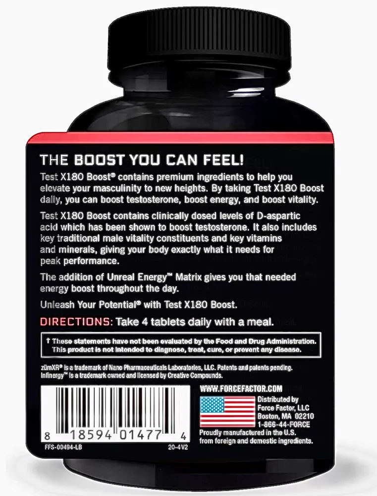 Main Purpose:Sports and Fitness Performance, Testosterone BoosterNumber of Pills:120Ingredients:D-Aspartic AcidType:Testosterone BoosterWhen to Take:Before MealNutrition Facts Label:YesUPC:818594014774Active Ingredients:D-Aspartic Acid, Caffeinegtin13:818594014774Formulation:TabletExpiration Date:06/2027Supply:1 Month and LongerCountry/Region of Manufacture:United StatesBrand:Force FactorType of Diet:Bodybuilding, Gym & Training