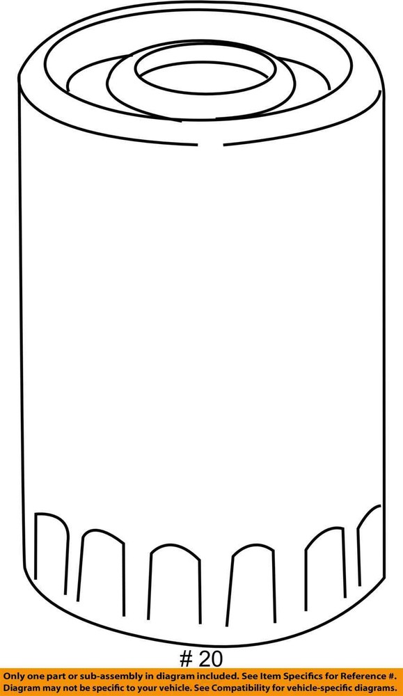 Quantity Needed: 1 Item Name: Oil Filter Manufacturer Warranty: 1 Year Category 1: Engine Brand: FORD OEM Return Policy: No returns for parts having electrical components Category 2: Engine gtin13: Does not apply UPC: Does not apply Interchange Part Number: 1BP00182AA,1BP00467AA,57502,67502X,84045,84502,B7449 Manufacturer Part Number: AA5Z6714A Genuine OEM: Yes Fitment Type: Direct Replacement Part Ref# on Diagram: ONLY PART REFERENCE #20 ON THE DIAGRAM IS INCLUDED Category 3: Engine Parts